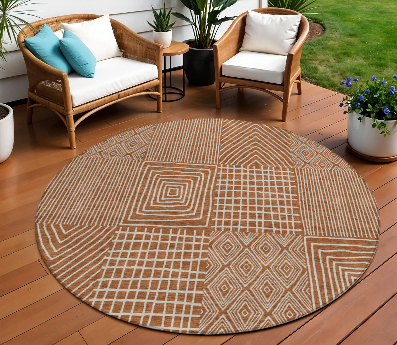 - Suitable for use both indoors and outdoors this rug is ideal for deck, porch, patio, pool, kitchen, entrance foyer, and more.