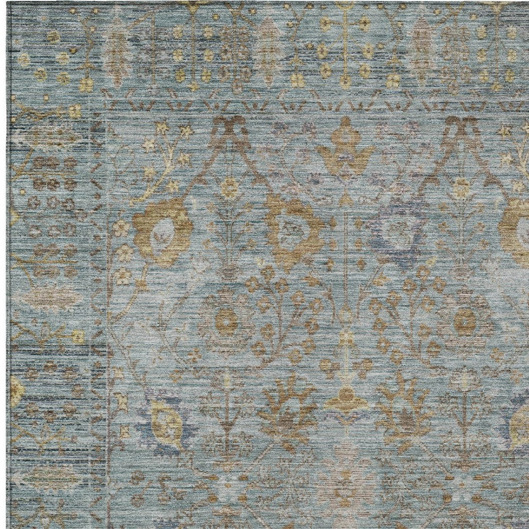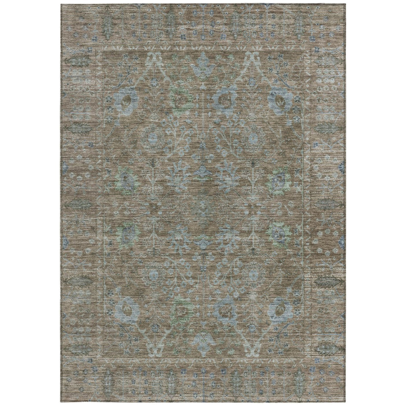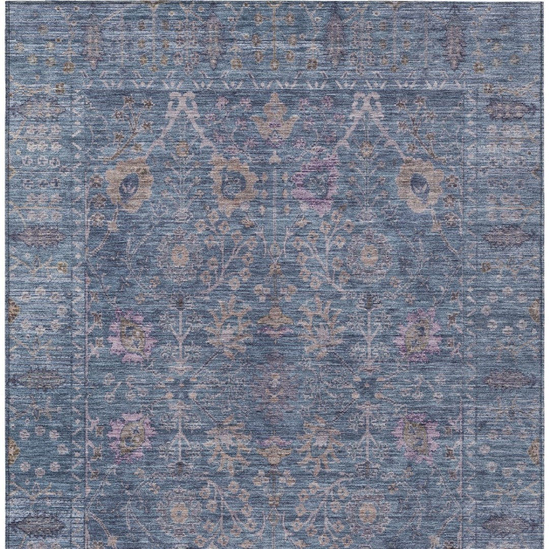 - Made from durable polyester, this rug features a beautiful blend of blue, brown, and purple colors to enhance any outdoor setting while being stain resistant.