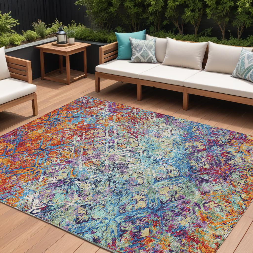 - Suitable for use both indoors and outdoors this rug is ideal for deck, porch, patio, pool, kitchen, entrance foyer, and more.