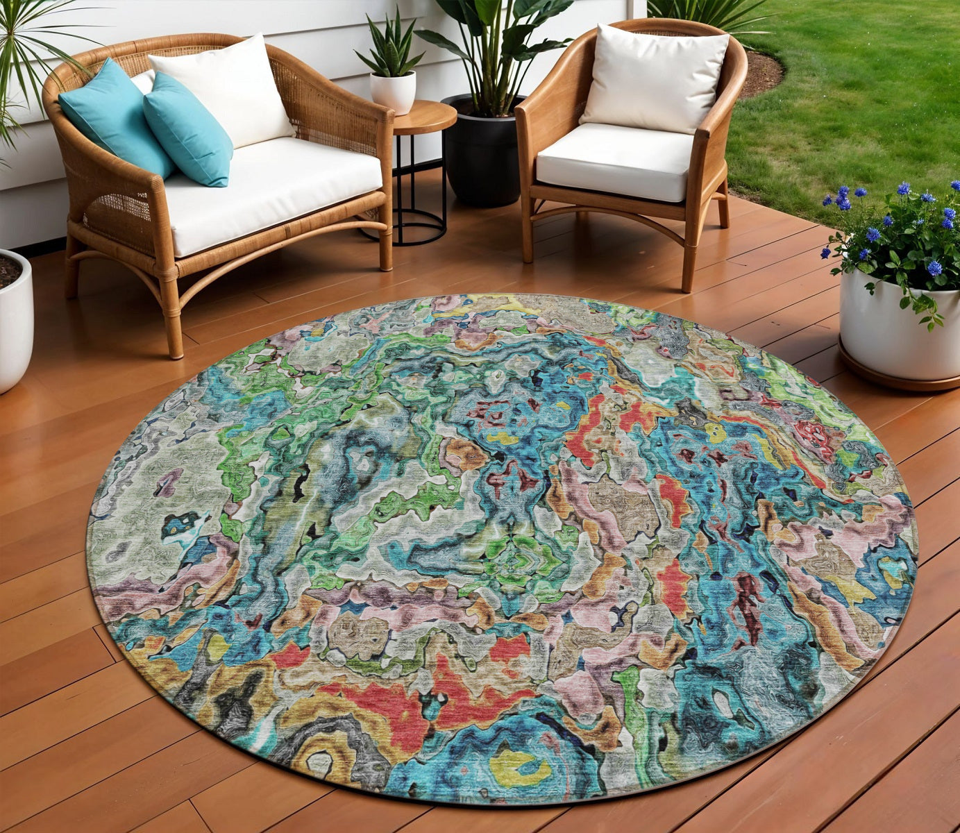 - Classically shaped, this versatile round rug is a great way to accent your indoor or outdoor space.
