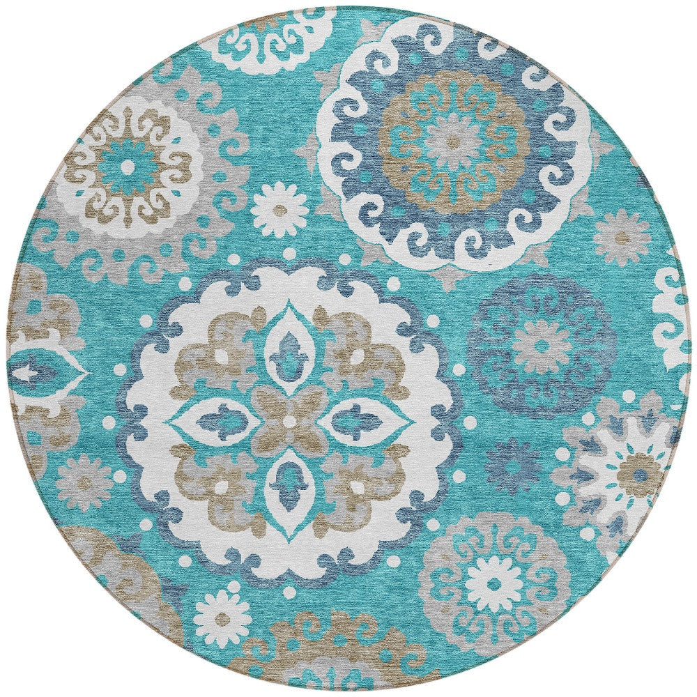- Classically shaped, this versatile round rug is a great way to accent your indoor or outdoor space.