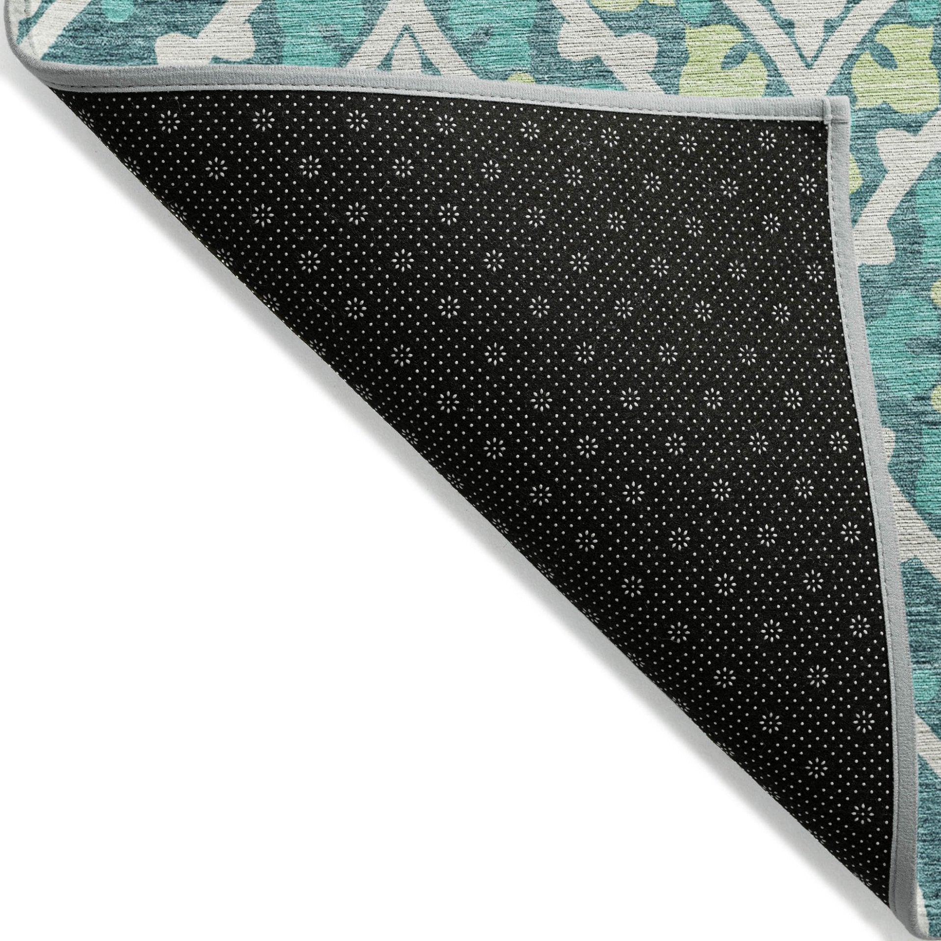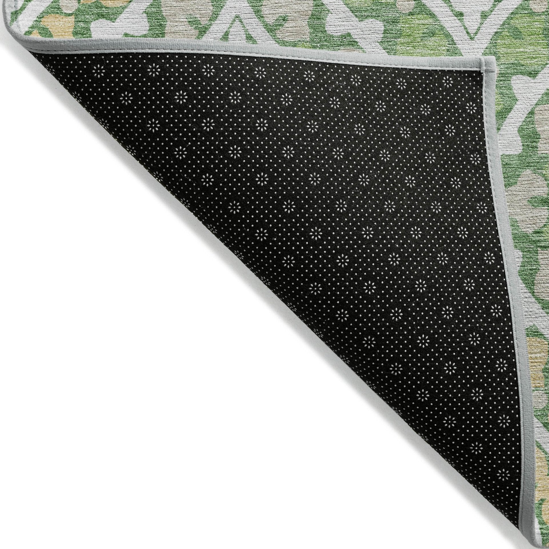 - A felt backing covers this rug to finish the look, keep the fibers in place, and help to keep the rug from slipping.