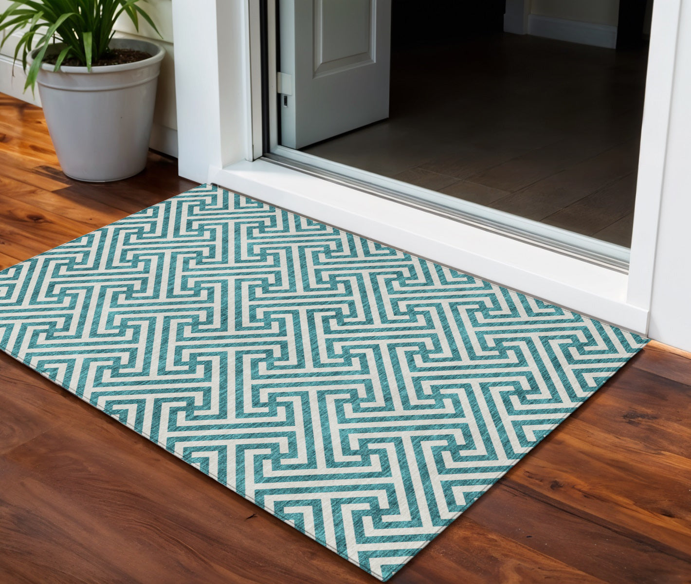 - Suitable for use both indoors and outdoors this rug is ideal for deck, porch, patio, pool, kitchen, entrance foyer, and more.