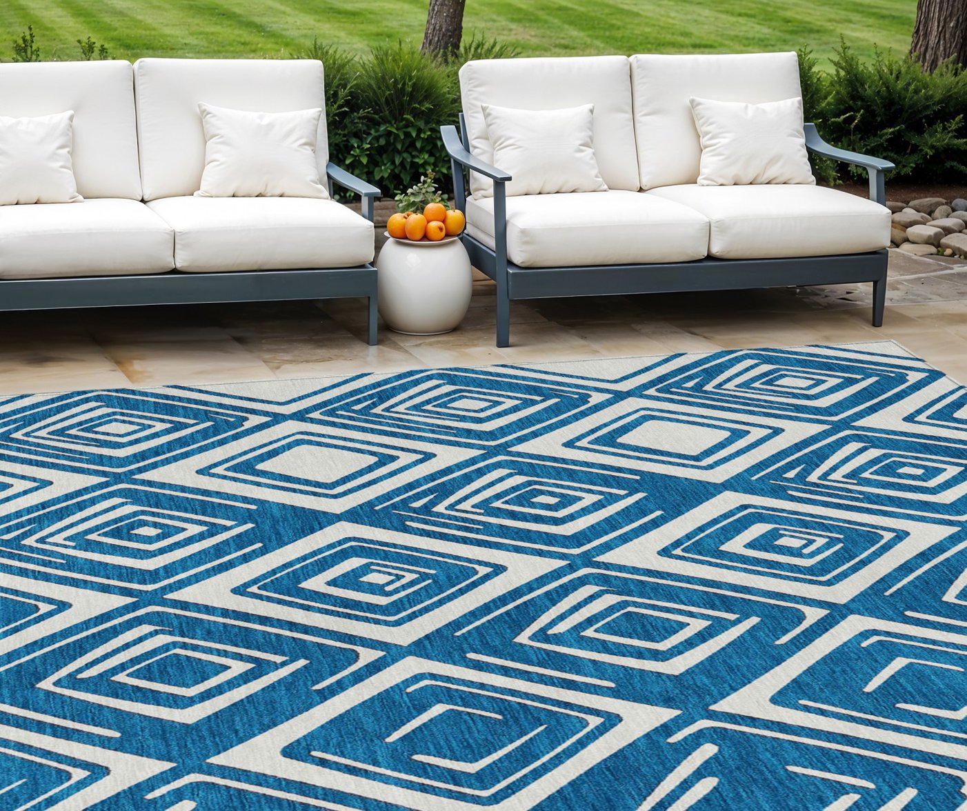 - Suitable for use both indoors and outdoors this rug is ideal for deck, porch, patio, pool, kitchen, entrance foyer, and more.