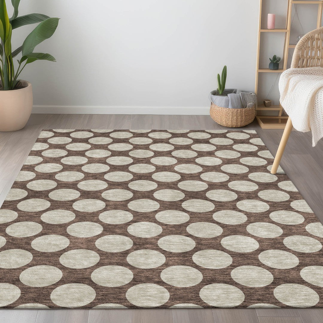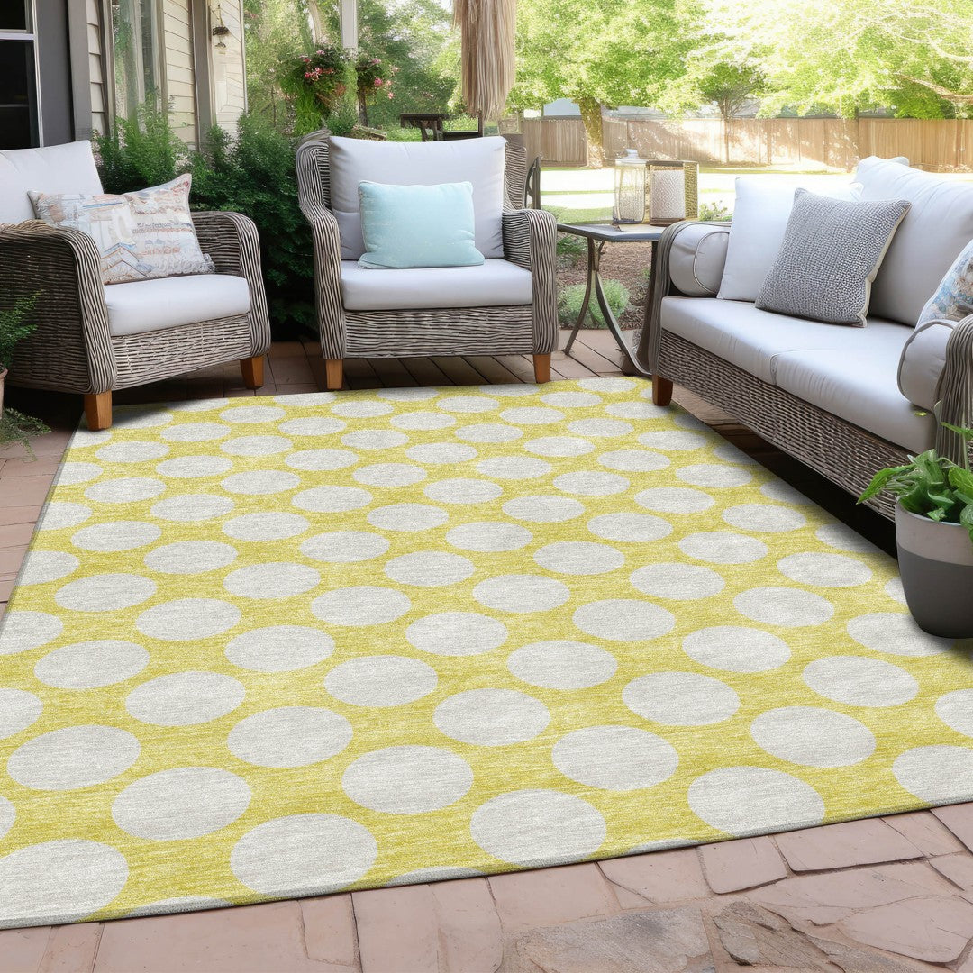 - Machine made outdoor rug with stain-resistant feature and non-slip backing for added durability.