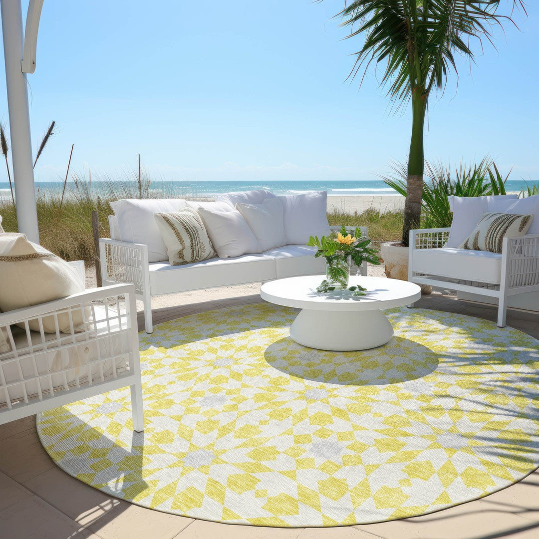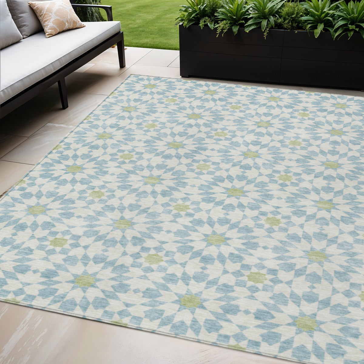- Easy to clean polyester outdoor rug with stain-resistant feature and non-slip backing for added safety.