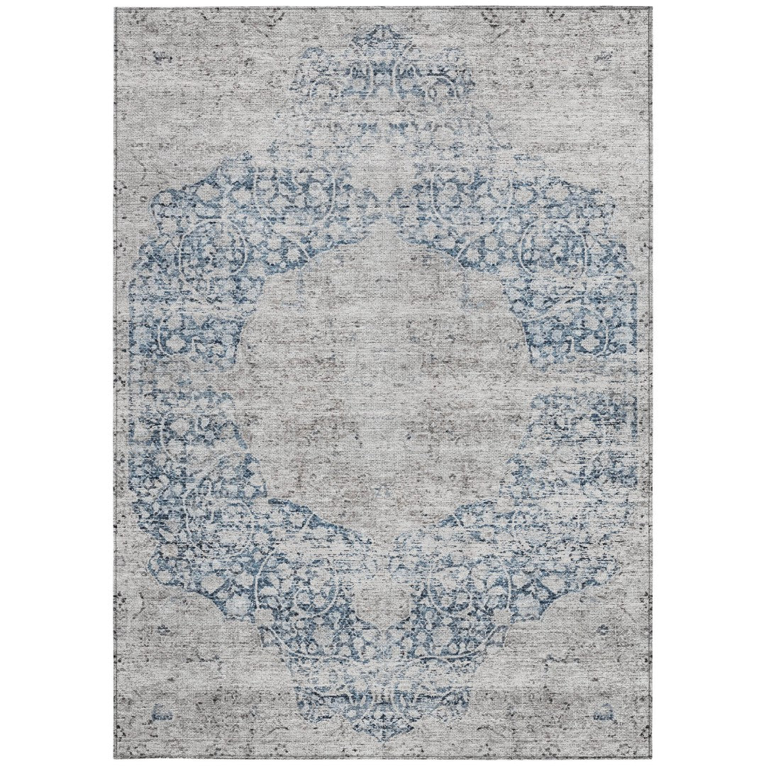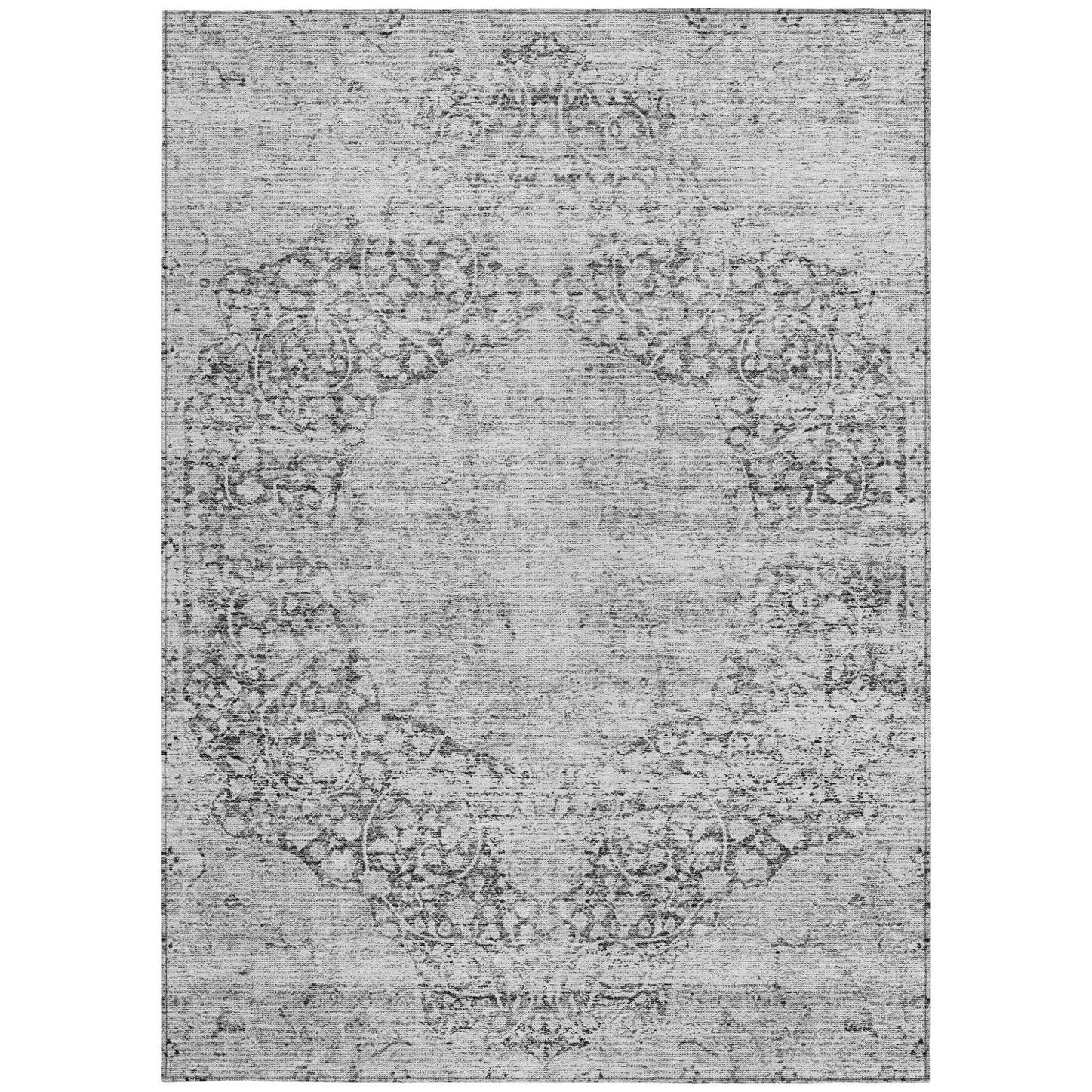- Crafted from durable polyester, this stain-resistant rug features a stylish gray and ivory color combination that enhances any outdoor setting.
