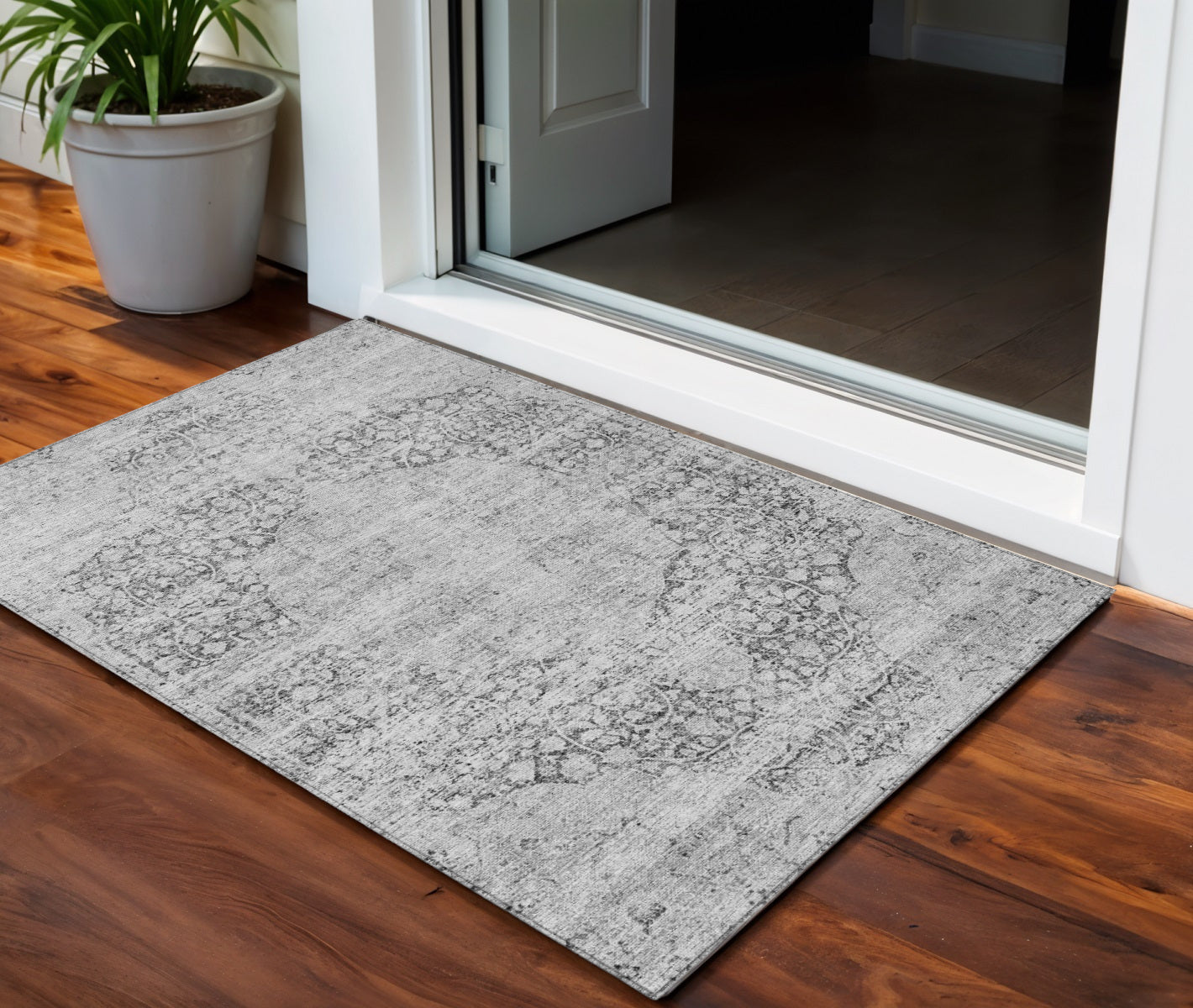 - Made from durable polyester, this gray and ivory rug is stain resistant for long-lasting beauty and easy maintenance.