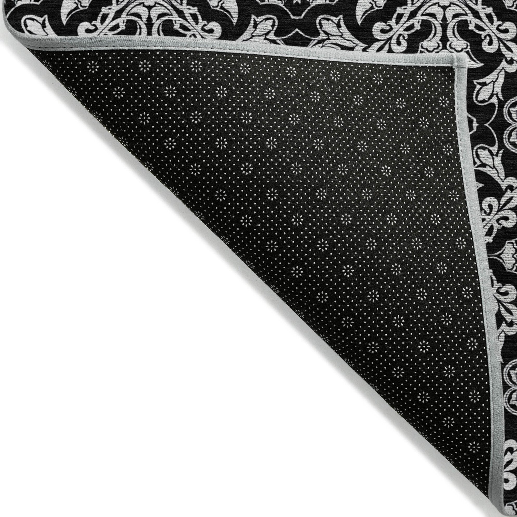 - A felt backing covers this rug to finish the look, keep the fibers in place, and help to keep the rug from slipping.