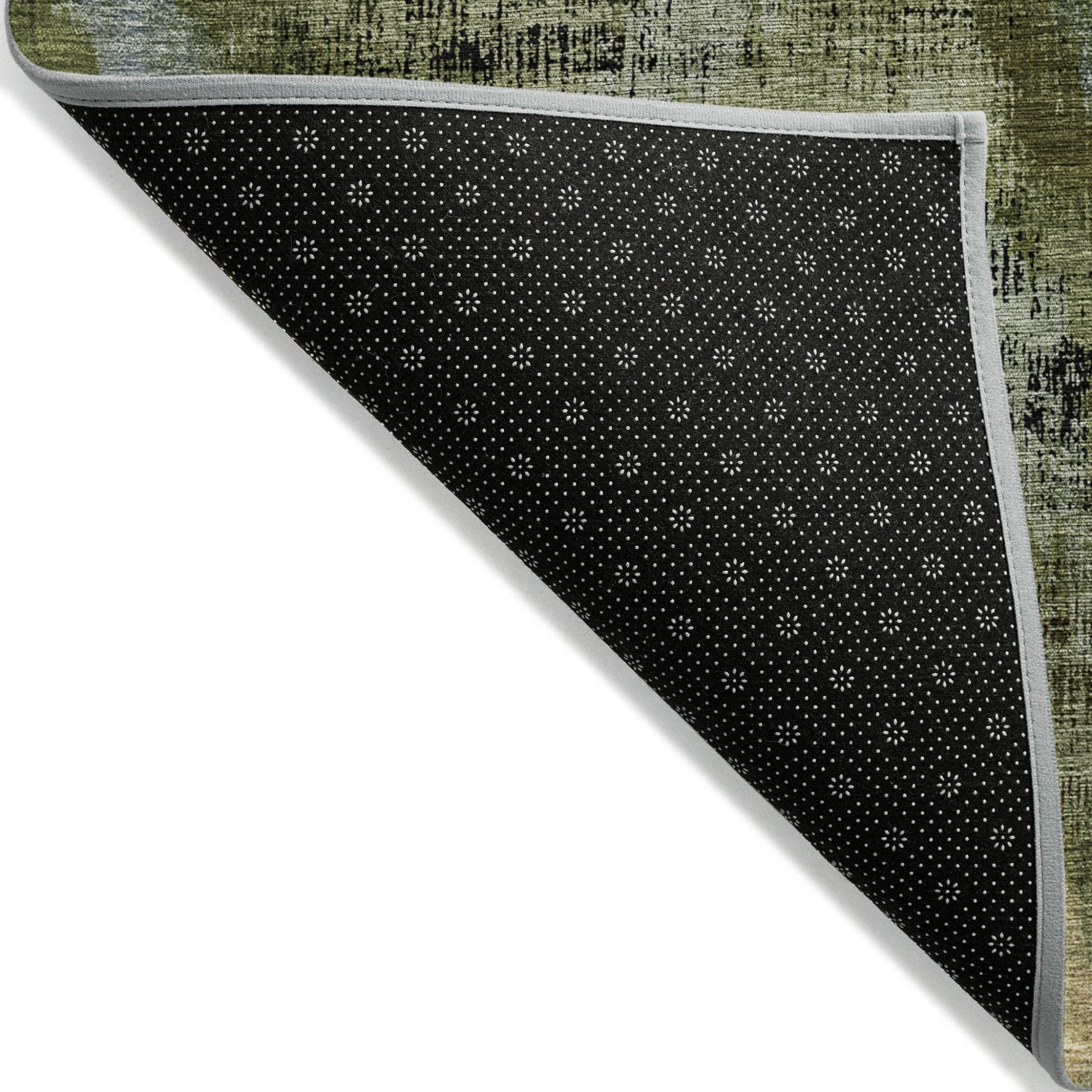 - A felt backing covers this rug to finish the look, keep the fibers in place, and help to keep the rug from slipping.