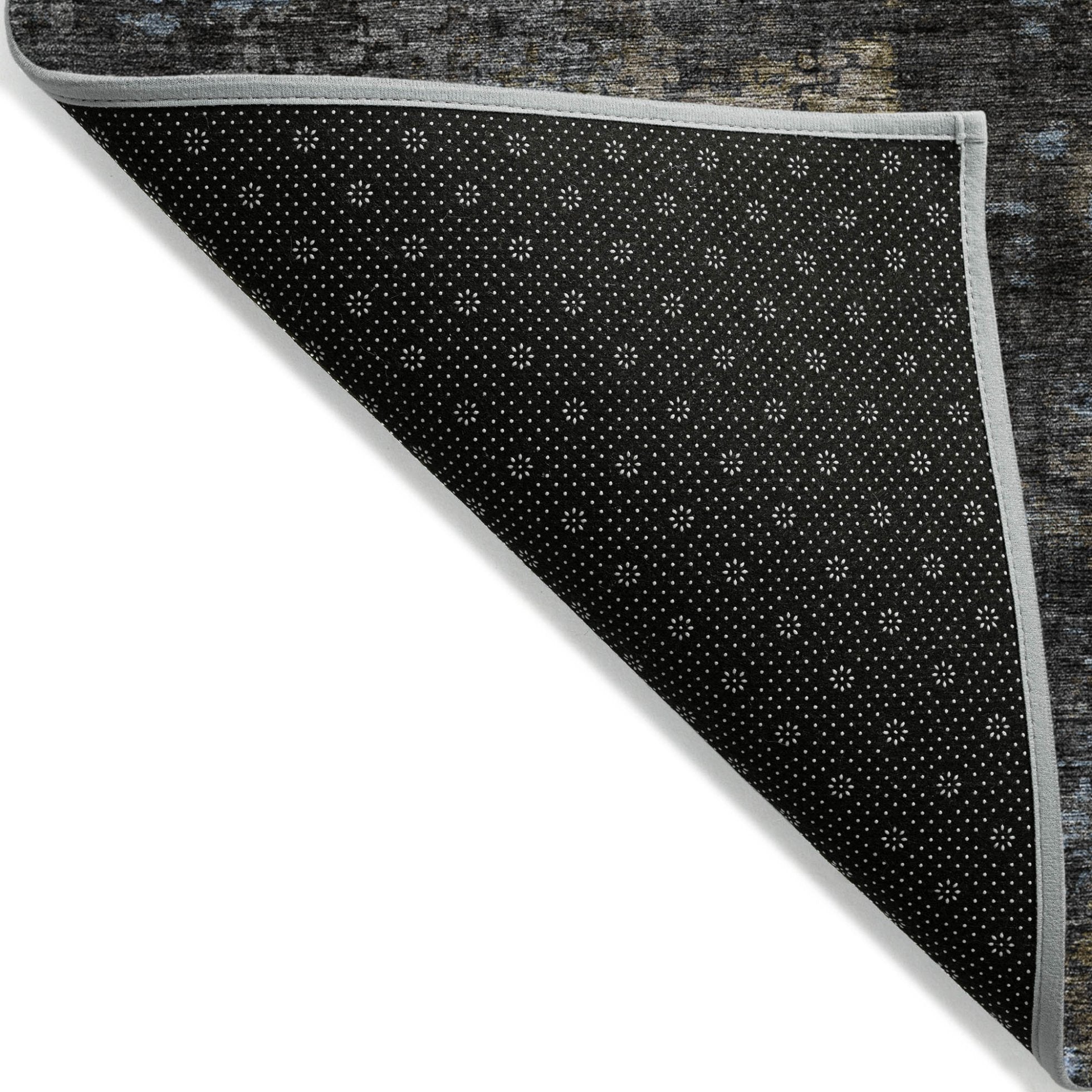 - A felt backing covers this rug to finish the look, keep the fibers in place, and help to keep the rug from slipping.