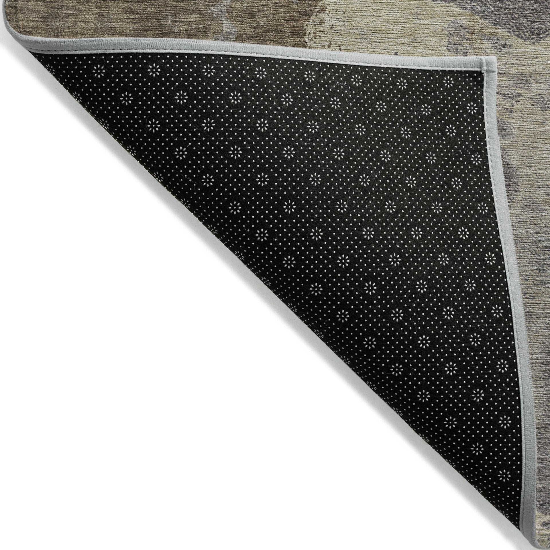 - A felt backing covers this rug to finish the look, keep the fibers in place, and help to keep the rug from slipping.