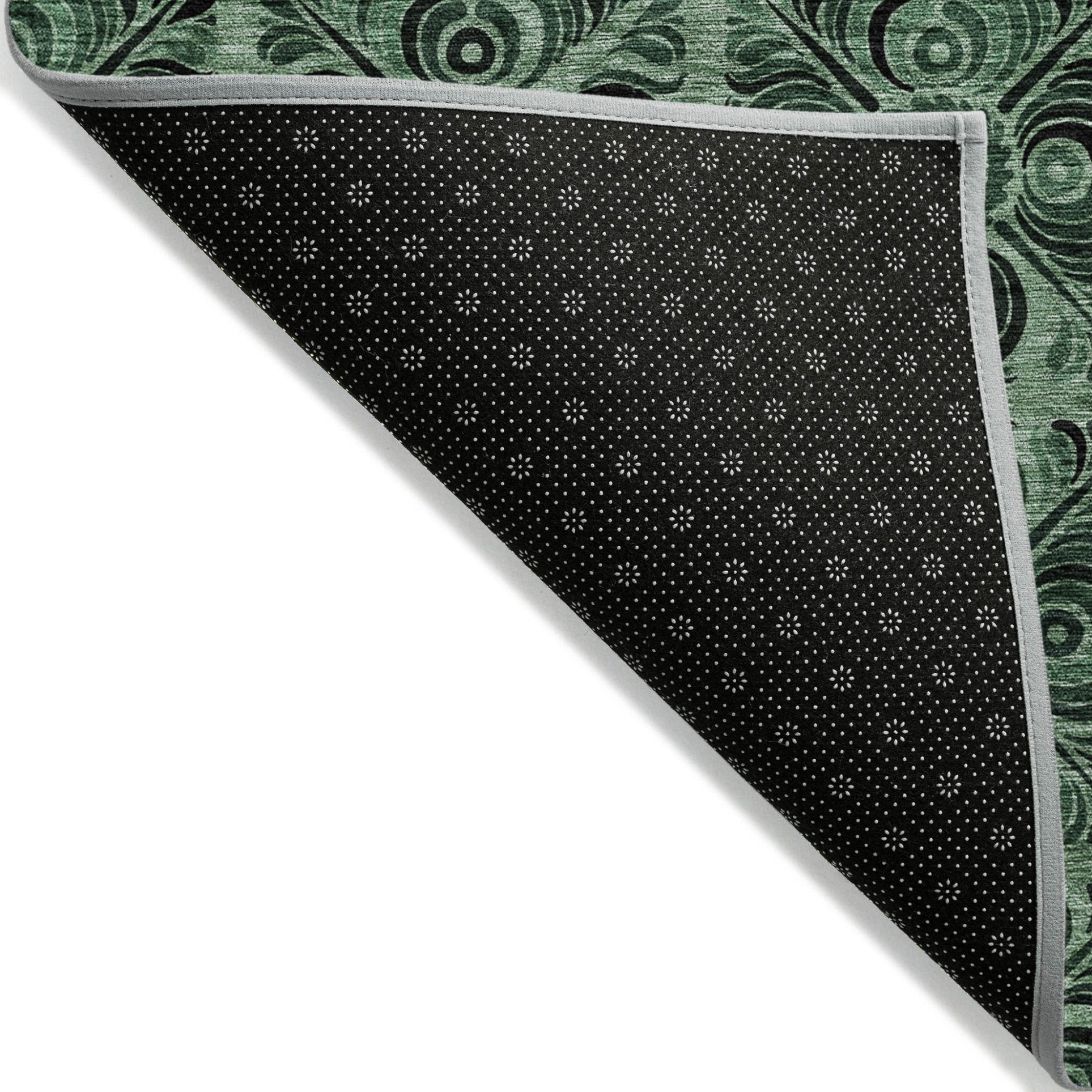 - A felt backing covers this rug to finish the look, keep the fibers in place, and help to keep the rug from slipping.