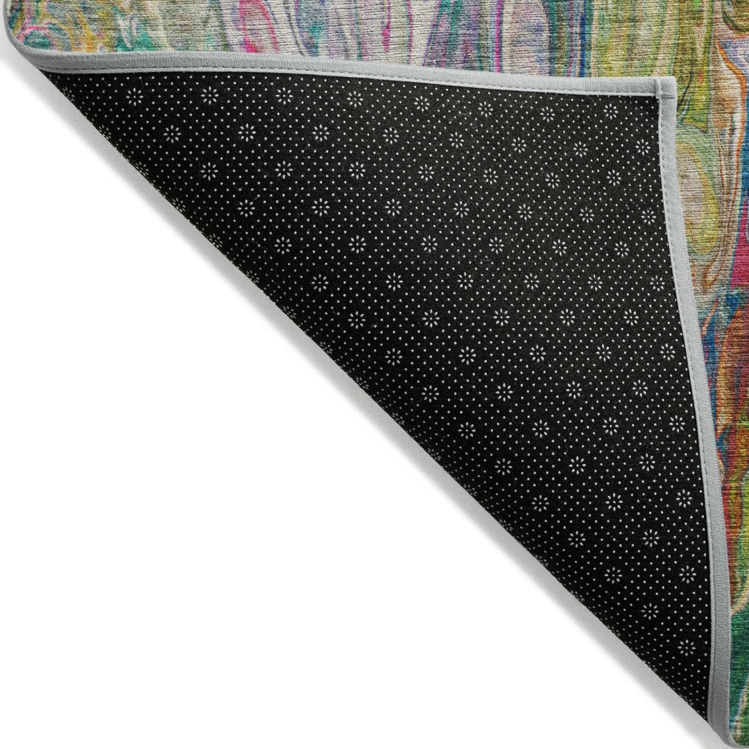 - A felt backing covers this rug to finish the look, keep the fibers in place, and help to keep the rug from slipping.