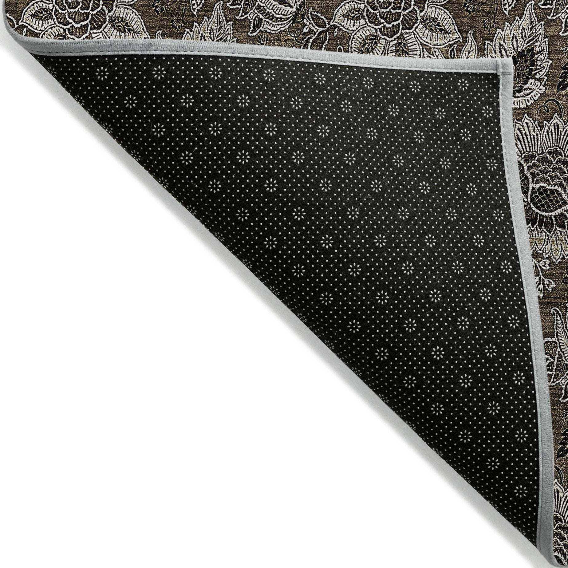 - A felt backing covers this rug to finish the look, keep the fibers in place, and help to keep the rug from slipping.