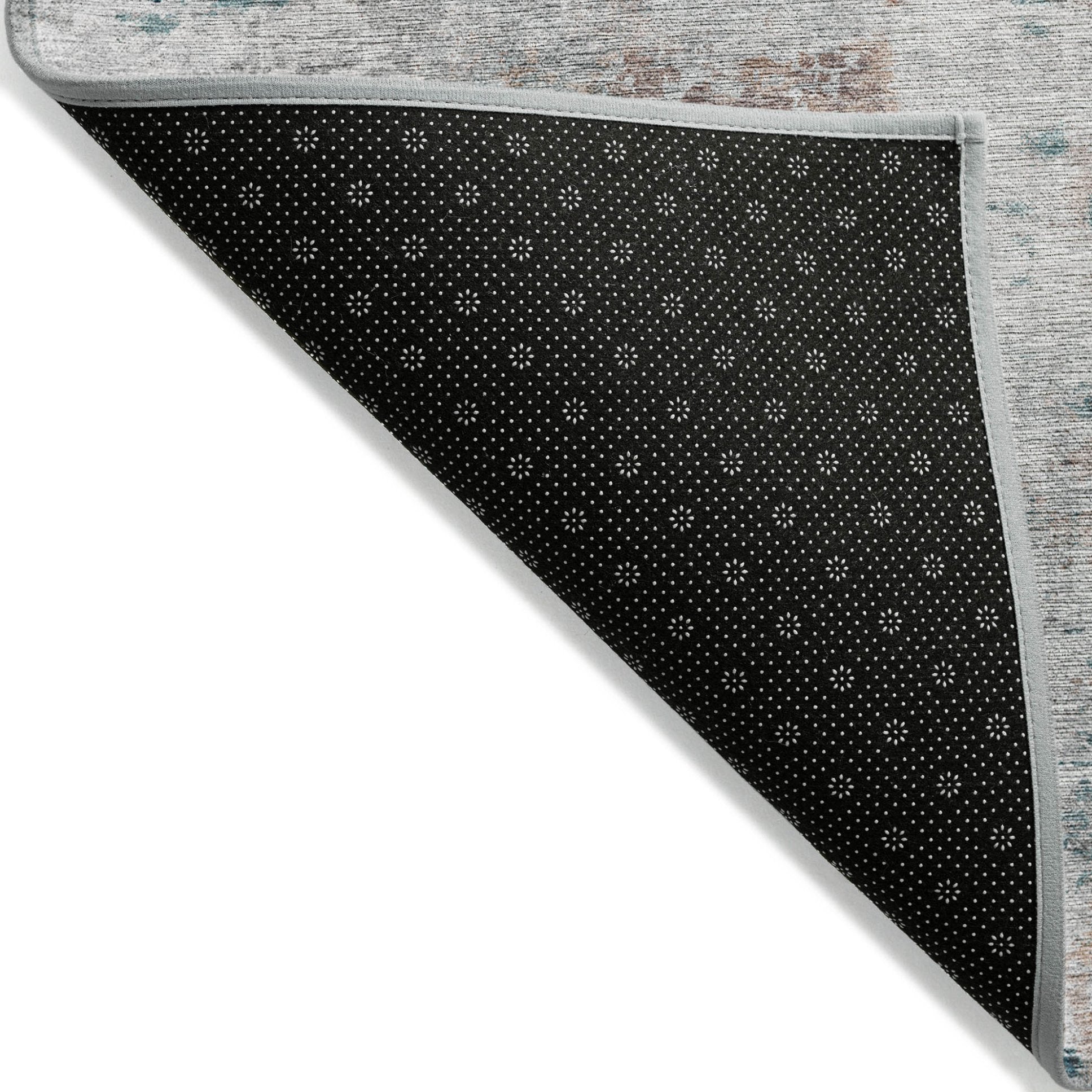 - A felt backing covers this rug to finish the look, keep the fibers in place, and help to keep the rug from slipping.