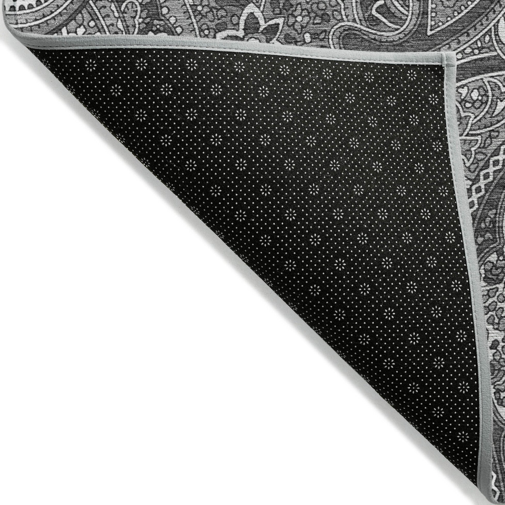 - A felt backing covers this rug to finish the look, keep the fibers in place, and help to keep the rug from slipping.