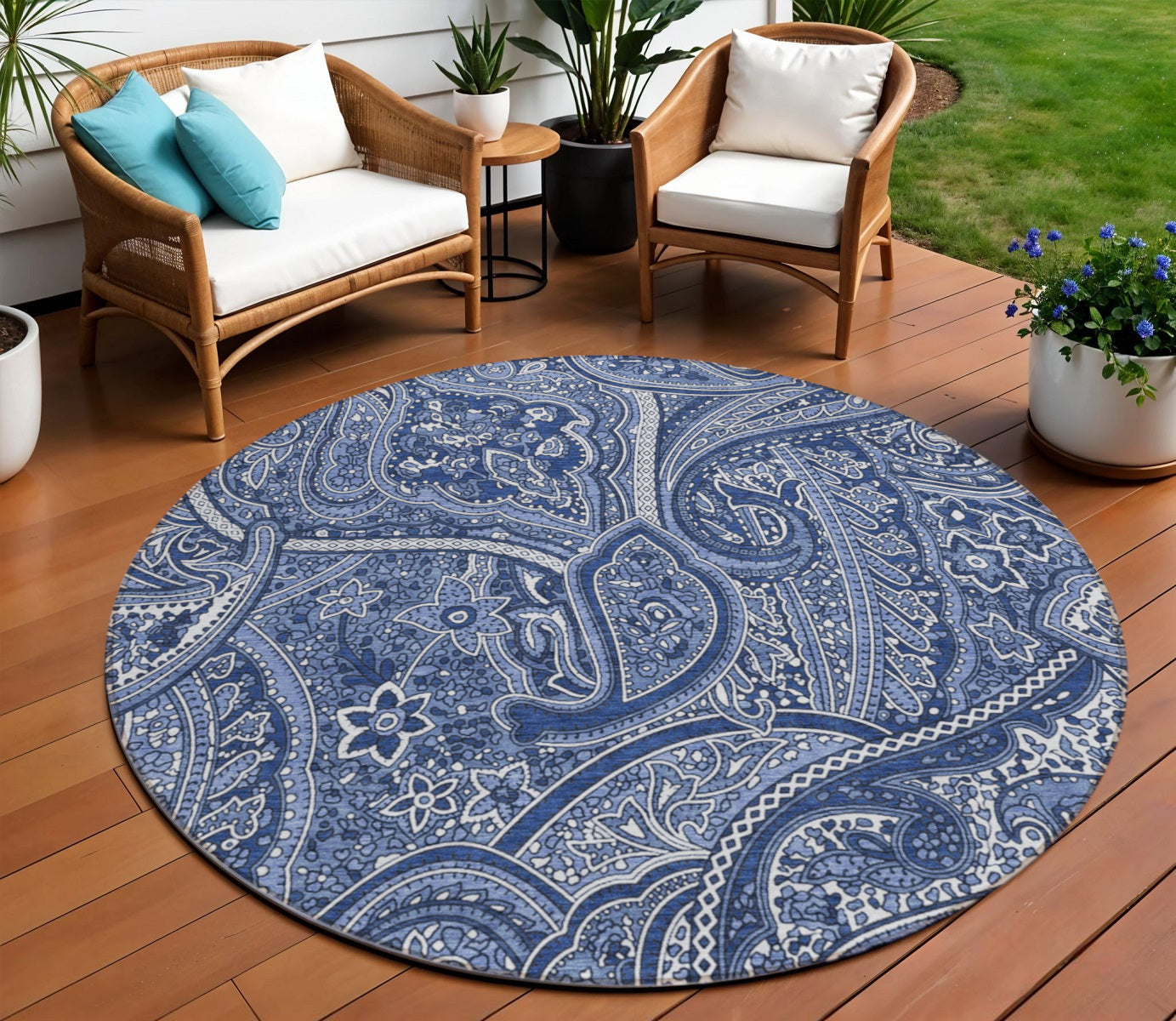 - Suitable for use both indoors and outdoors this rug is ideal for deck, porch, patio, pool, kitchen, entrance foyer, and more.