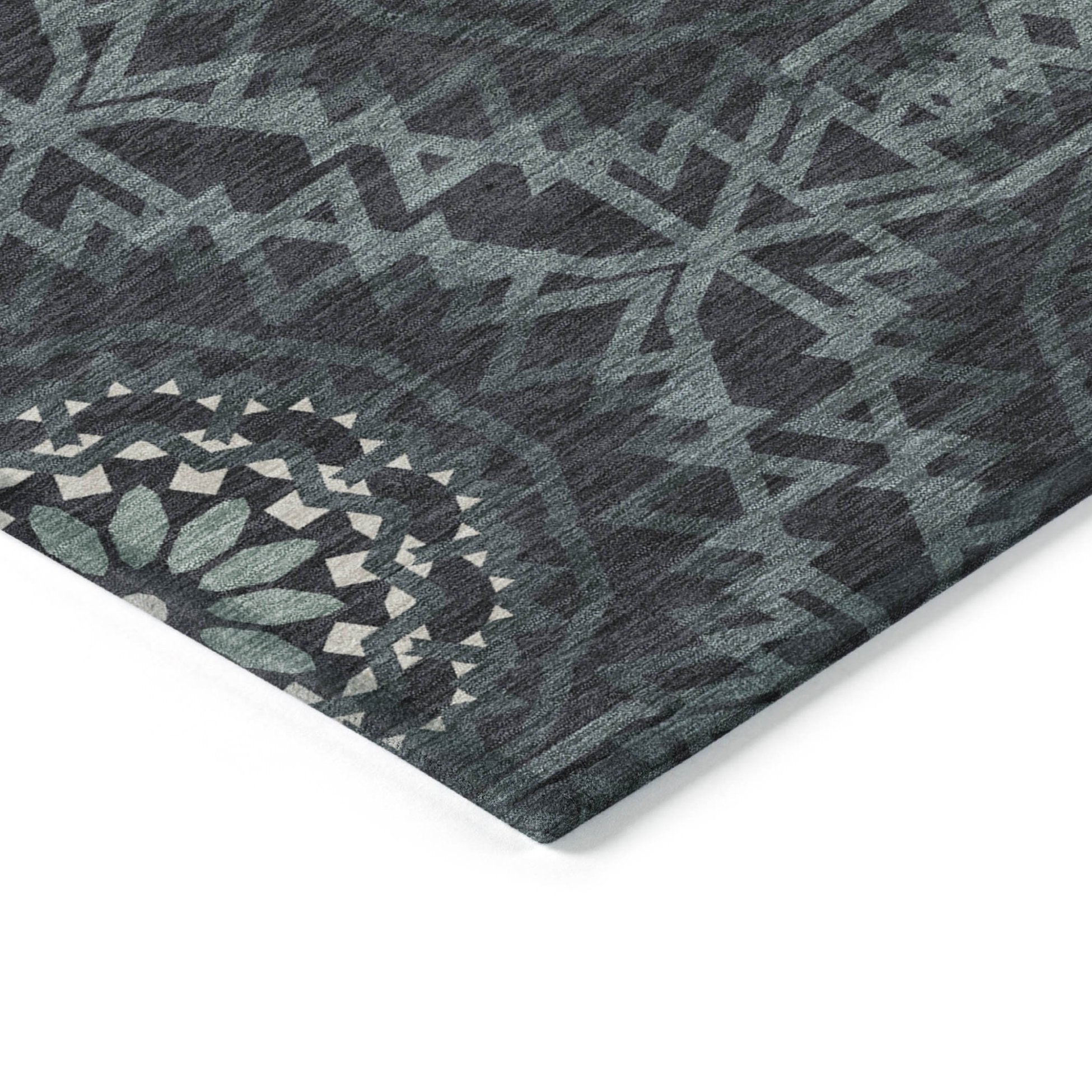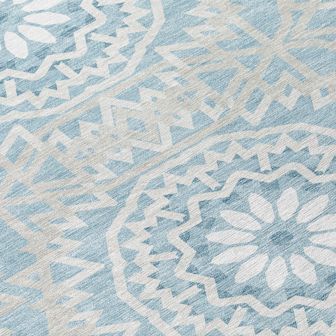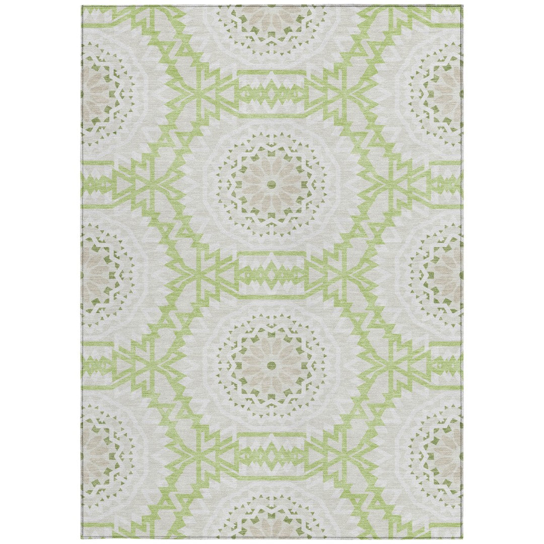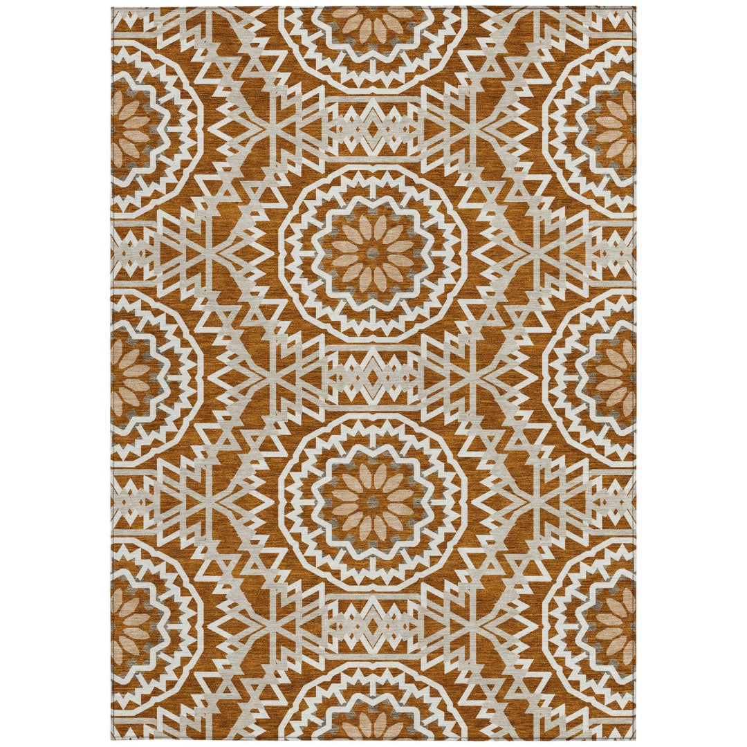 - Stain-resistant outdoor rug with machine-made construction from polyester material.