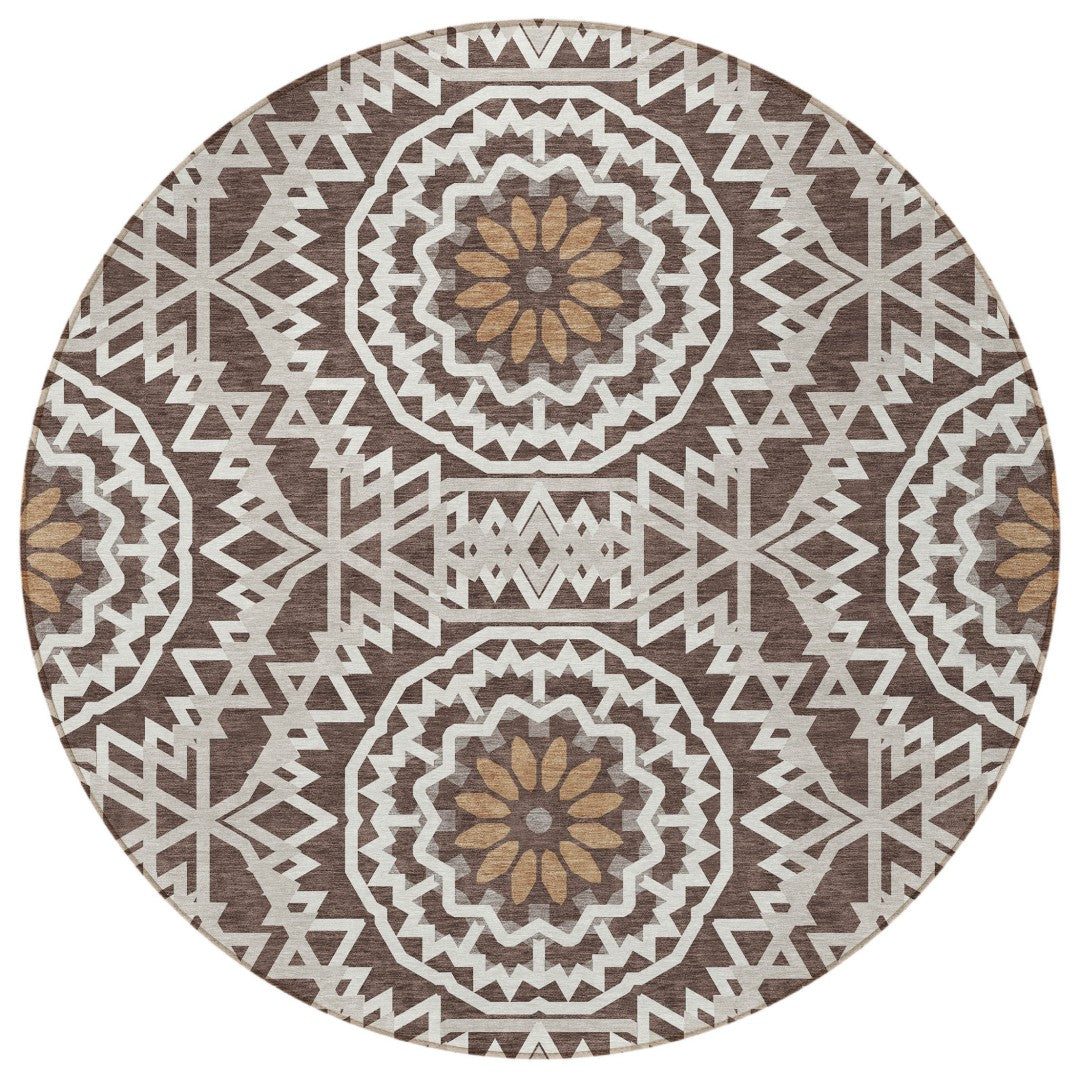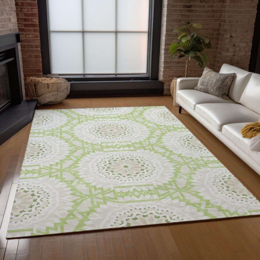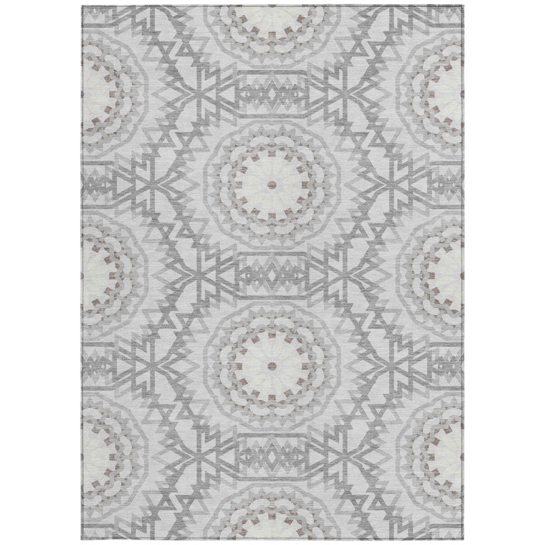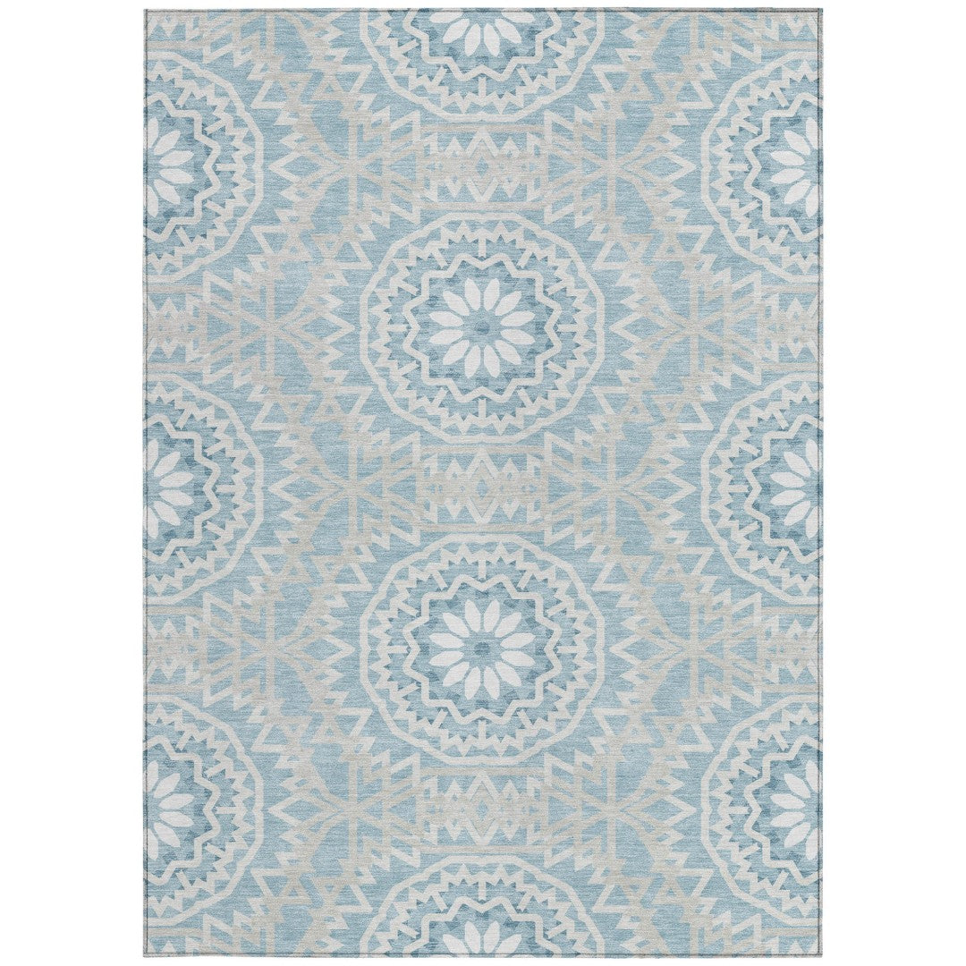 - Stain-resistant outdoor rug with machine-made construction from polyester material.