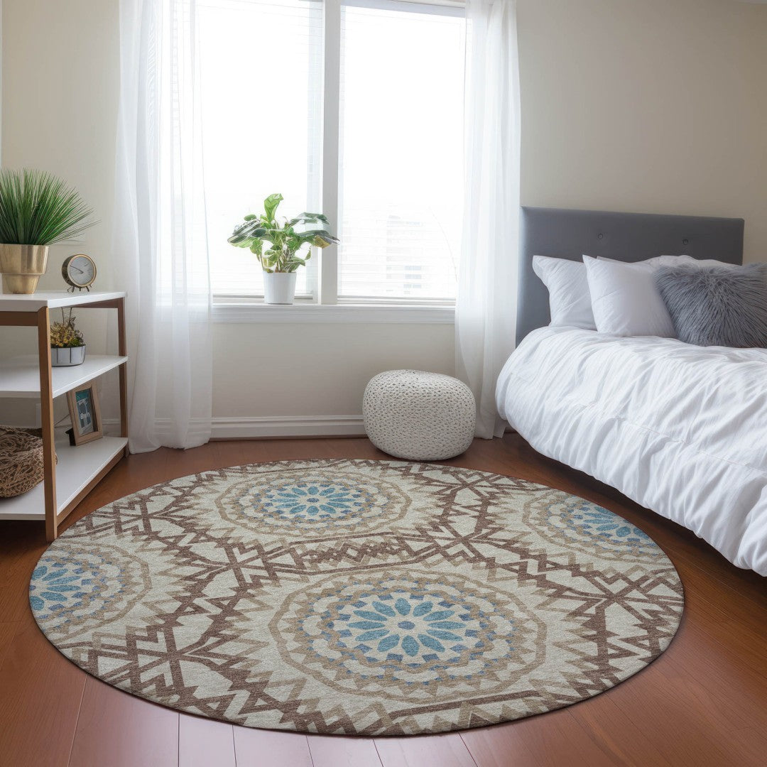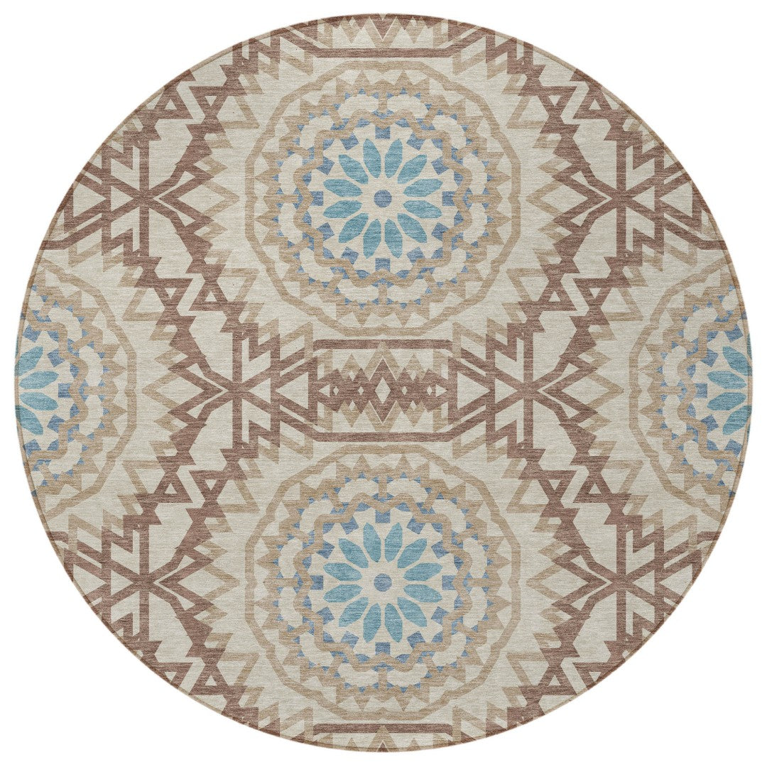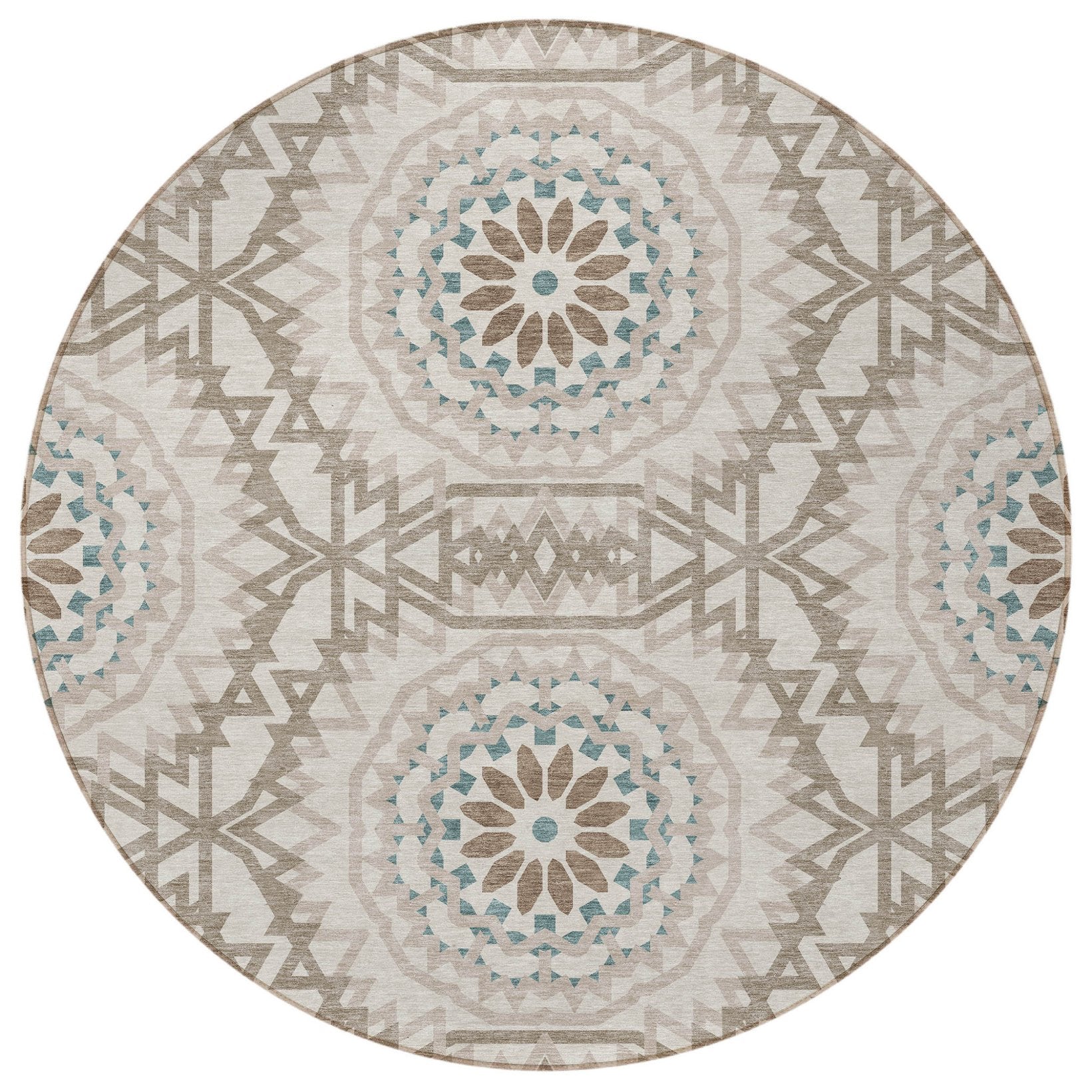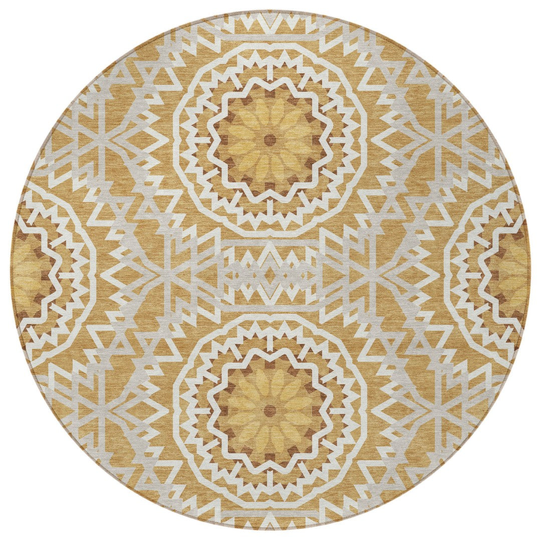 - Stain-resistant outdoor rug with machine-made construction from polyester material.