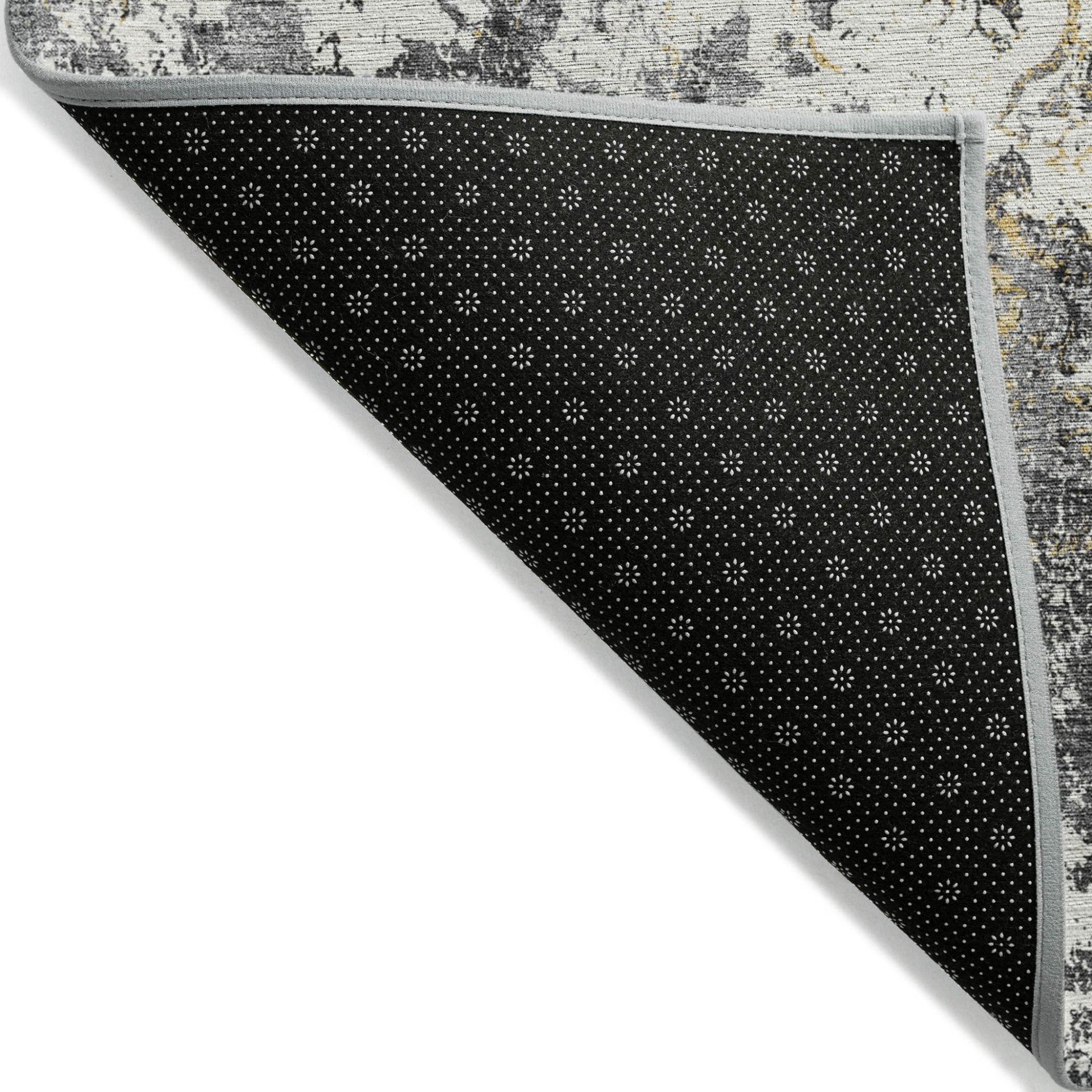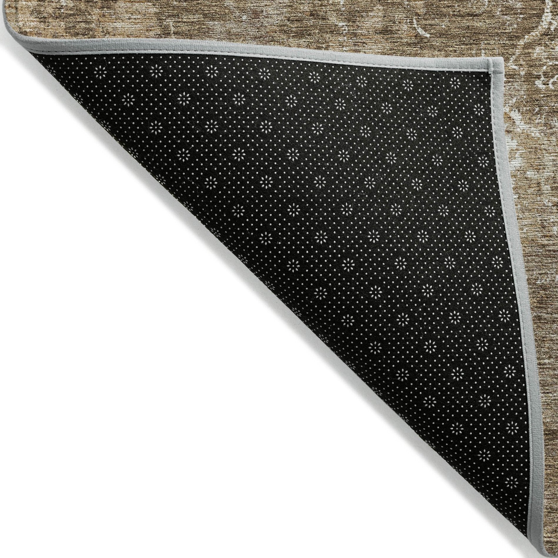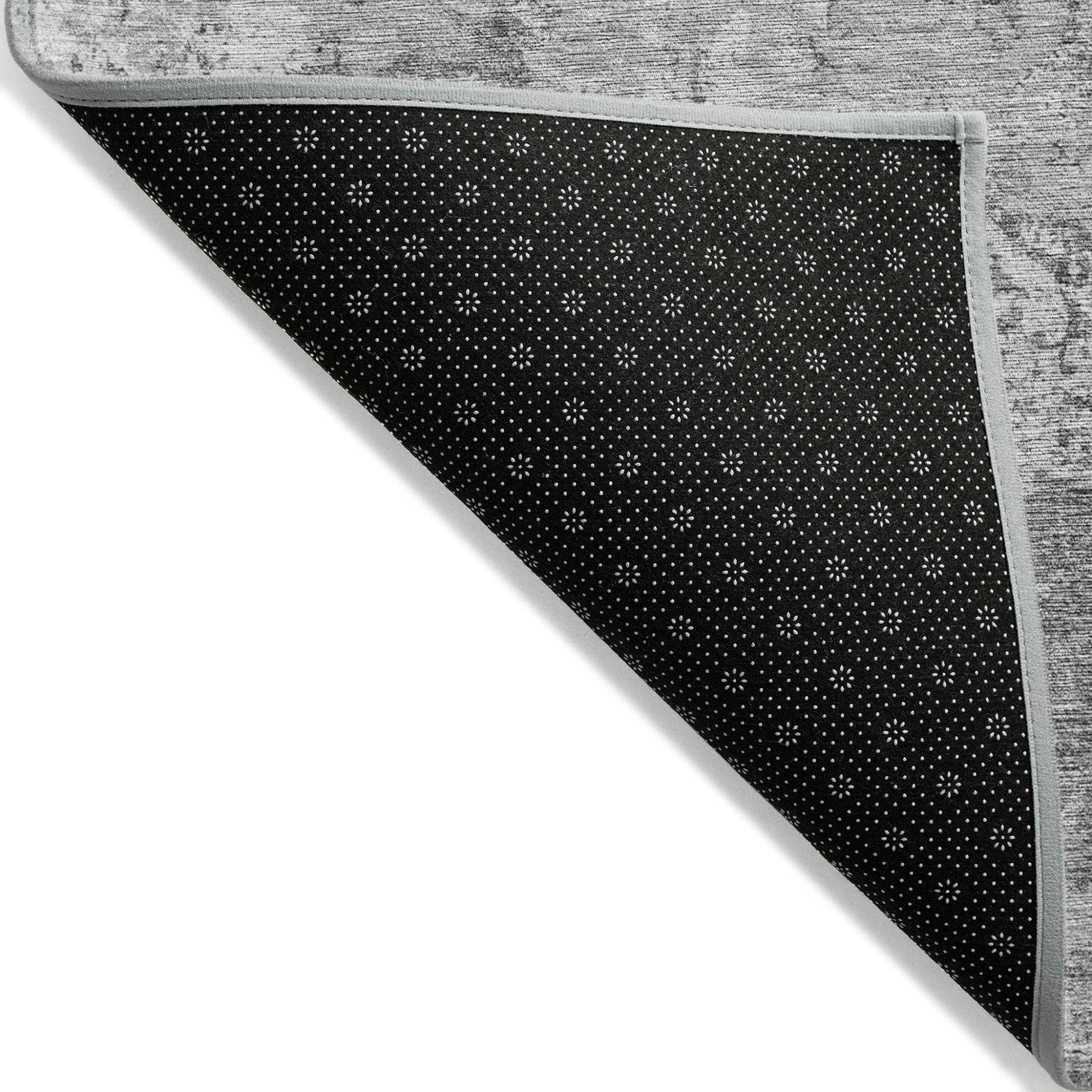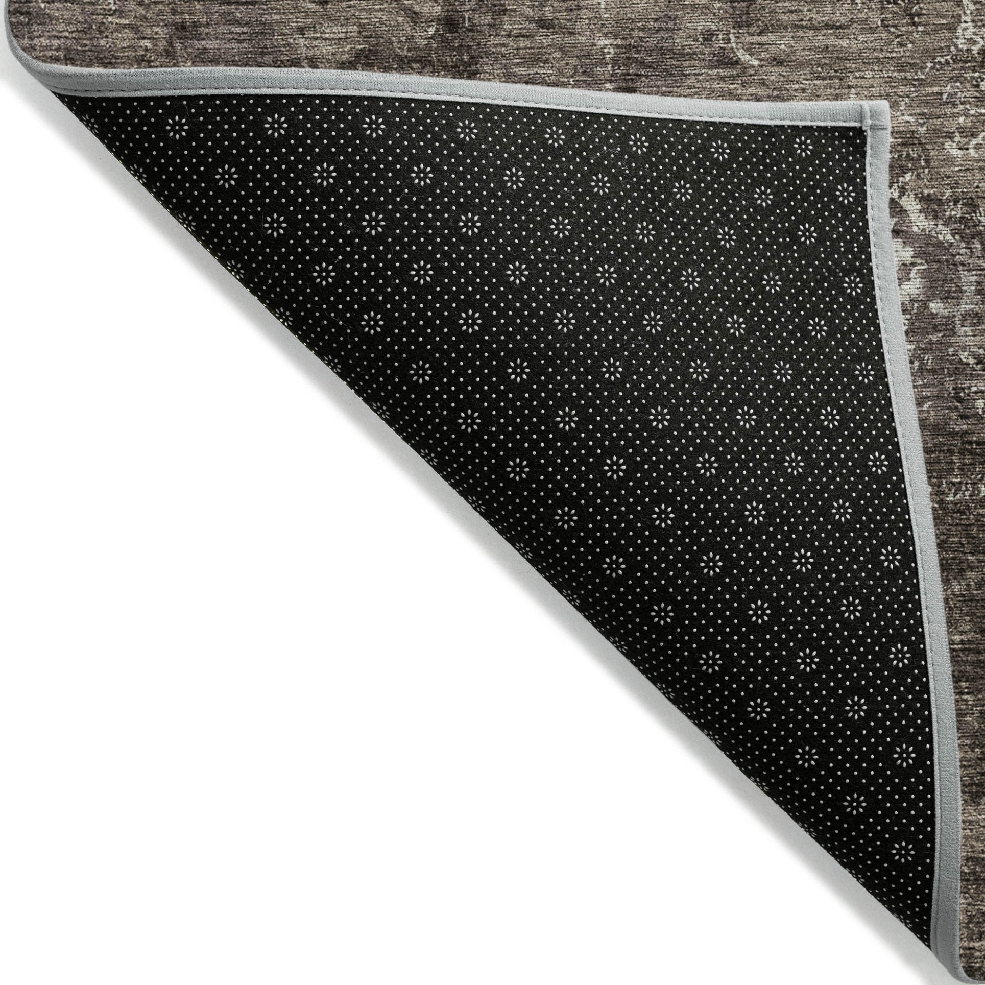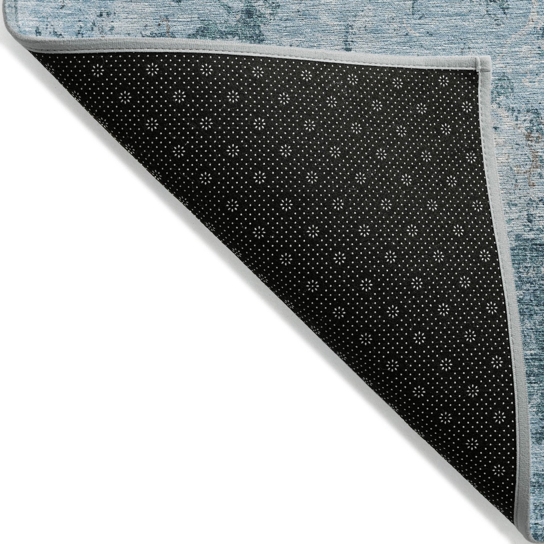 - A felt backing covers this rug to finish the look, keep the fibers in place, and help to keep the rug from slipping.