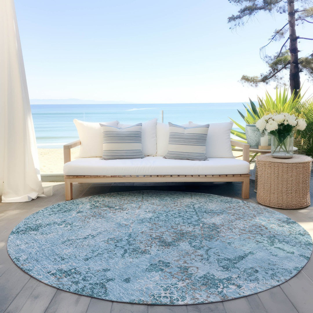 - Classically shaped, this versatile round rug is a great way to accent your indoor or outdoor space.