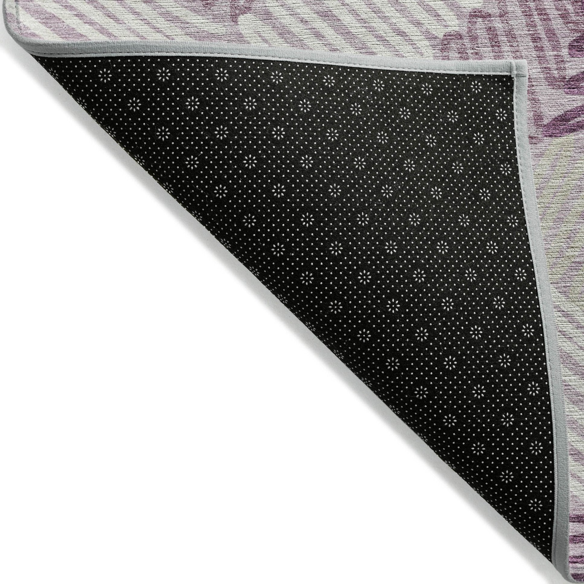 - A felt backing covers this rug to finish the look, keep the fibers in place, and help to keep the rug from slipping.