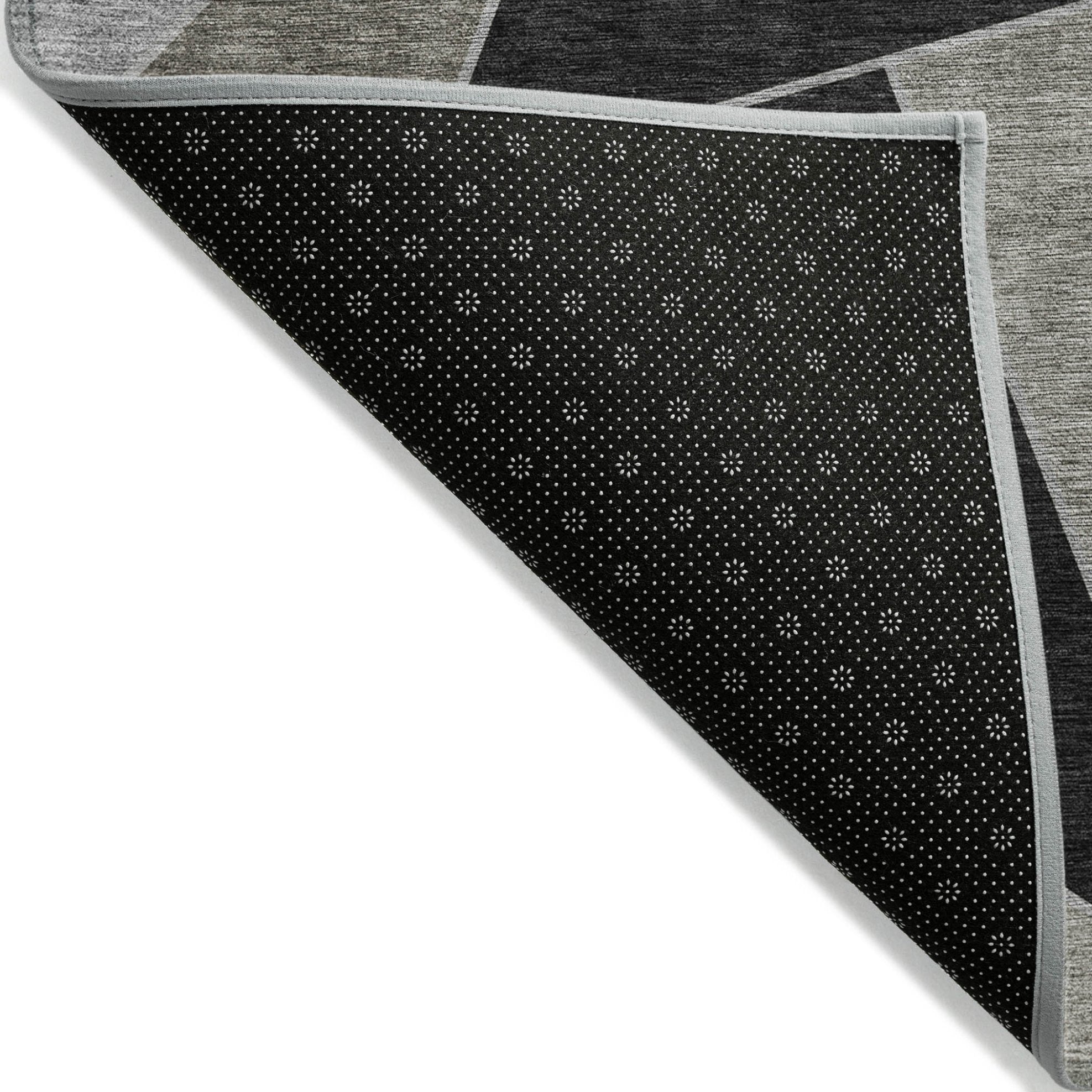 - A felt backing covers this rug to finish the look, keep the fibers in place, and help to keep the rug from slipping.