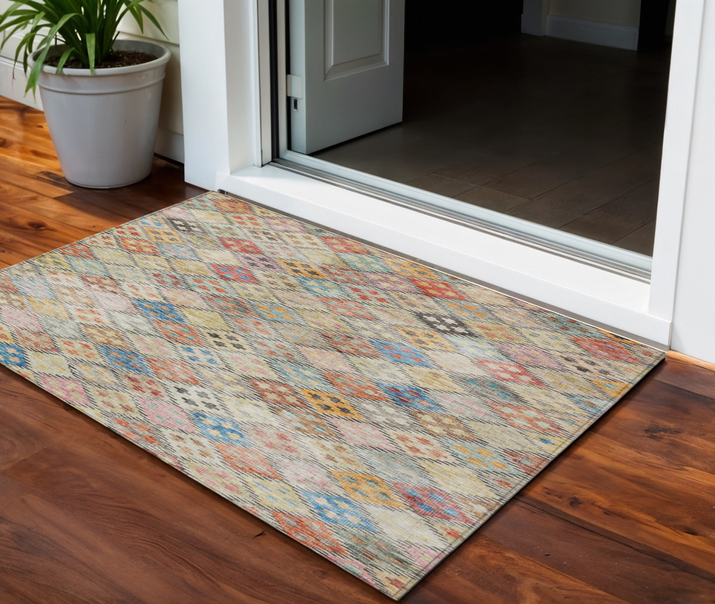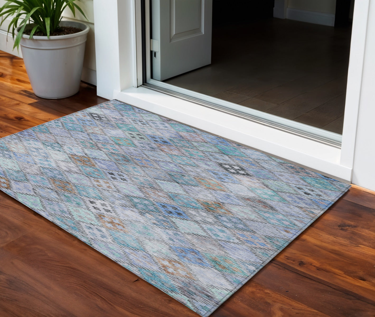 - Suitable for use both indoors and outdoors this rug is ideal for deck, porch, patio, pool, kitchen, entrance foyer, and more.