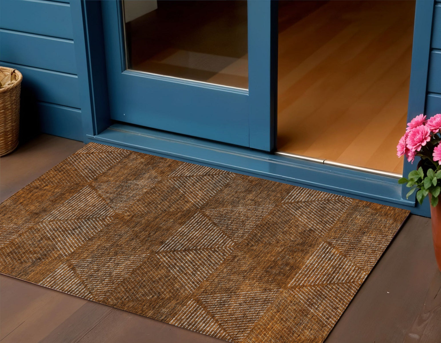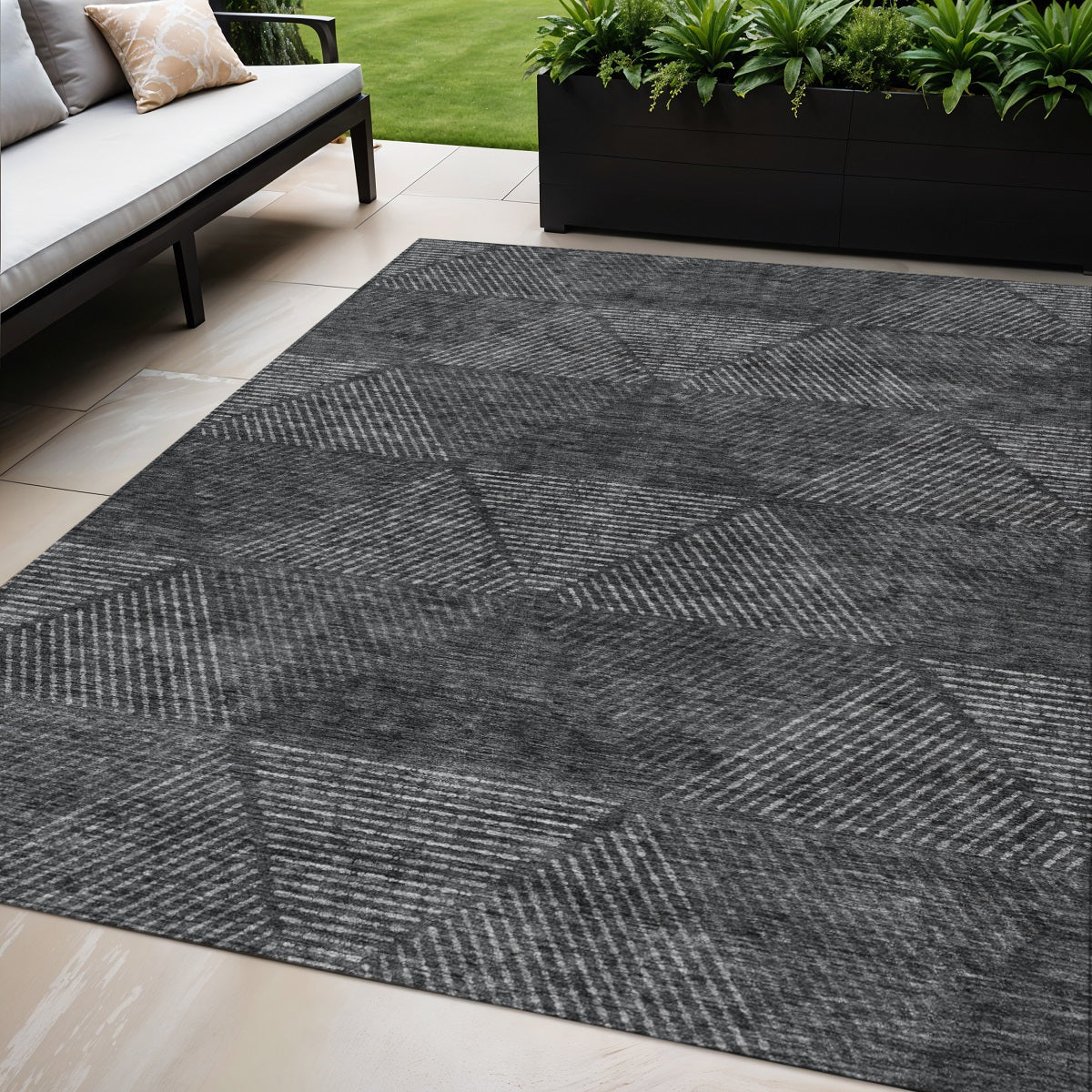 - Suitable for use both indoors and outdoors this rug is ideal for deck, porch, patio, pool, kitchen, entrance foyer, and more.