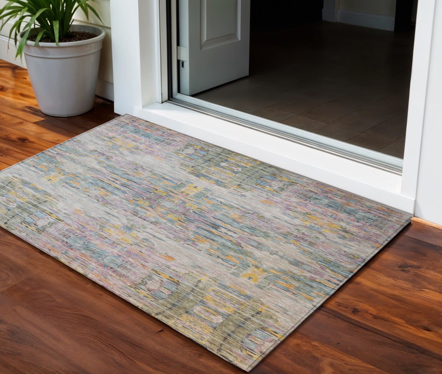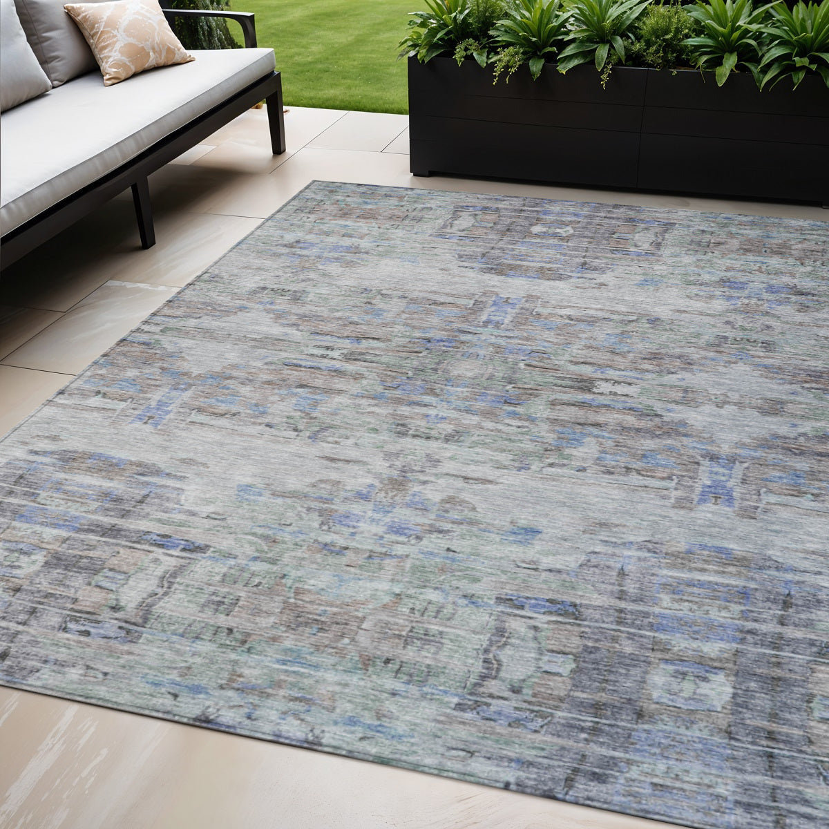 - Suitable for use both indoors and outdoors this rug is ideal for deck, porch, patio, pool, kitchen, entrance foyer, and more.