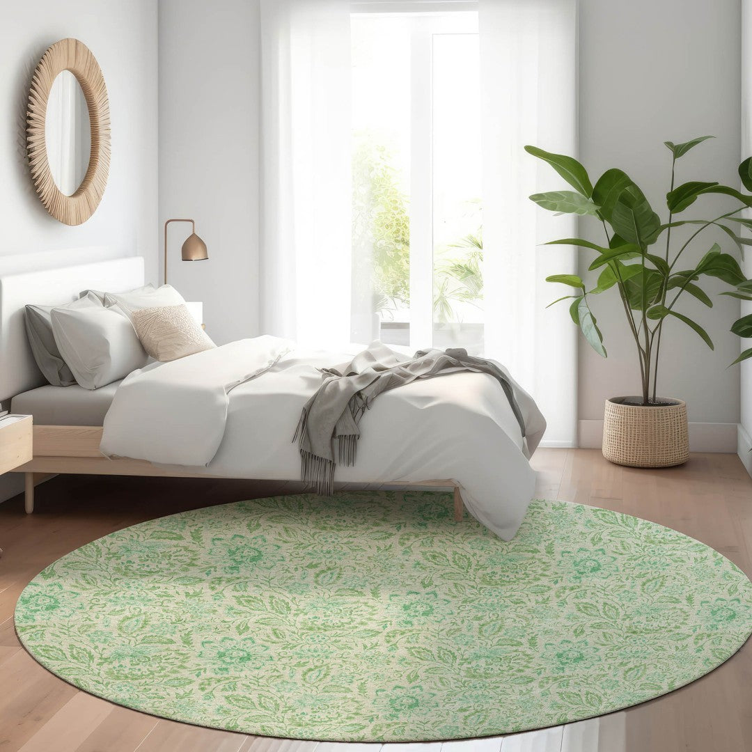 - Classically shaped, this versatile round rug is a great way to accent your indoor or outdoor space.