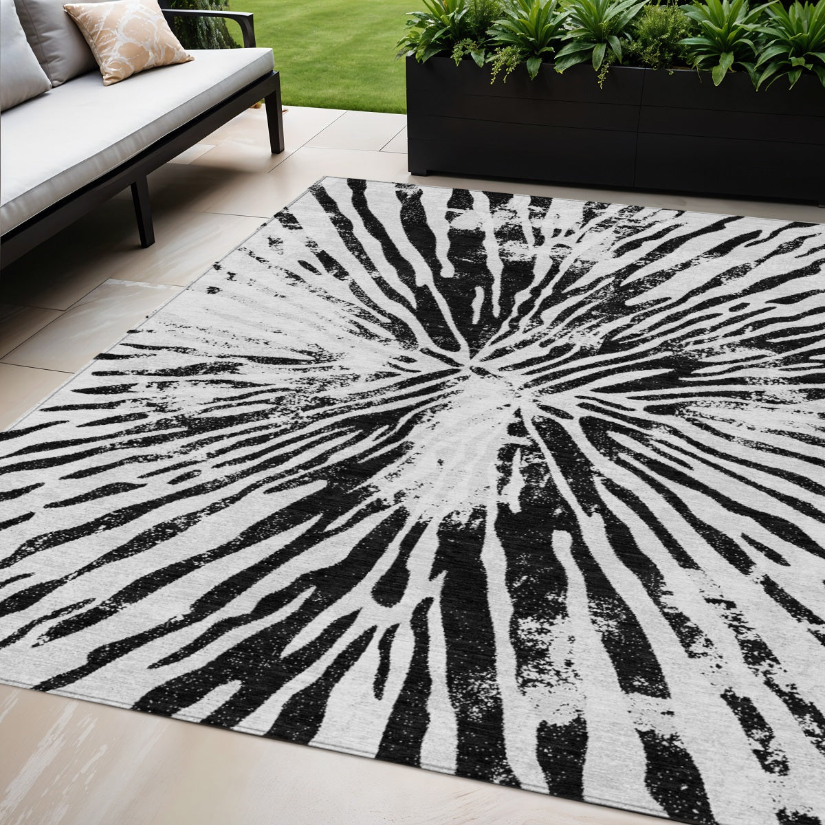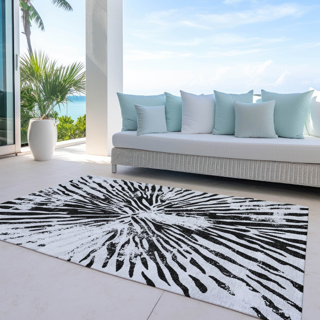 - Suitable for use both indoors and outdoors this rug is ideal for deck, porch, patio, pool, kitchen, entrance foyer, and more.