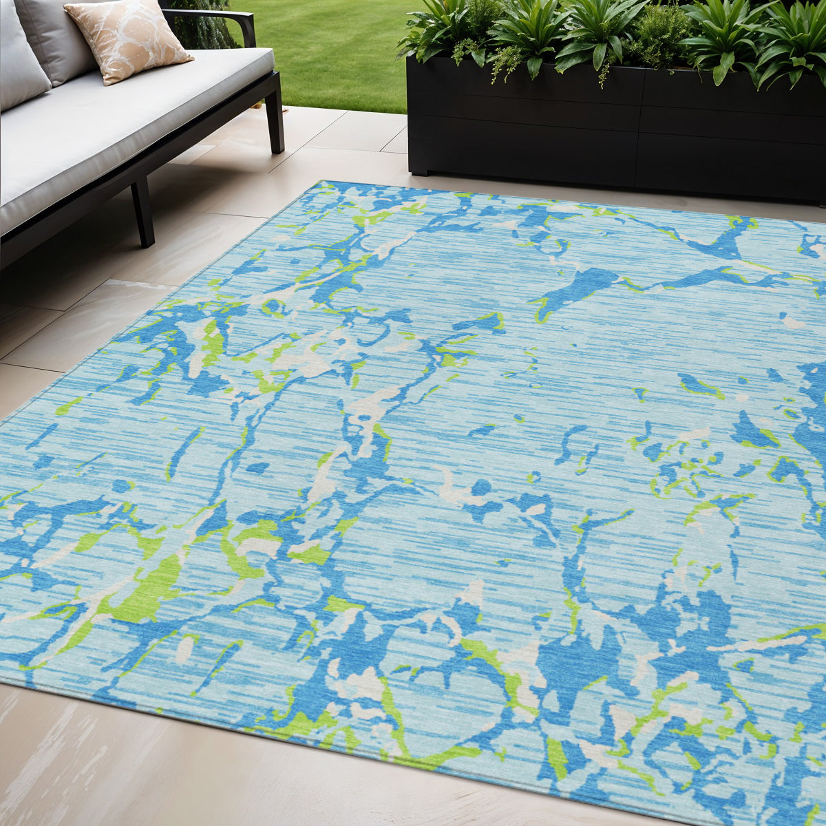 - Suitable for use both indoors and outdoors this rug is ideal for deck, porch, patio, pool, kitchen, entrance foyer, and more.