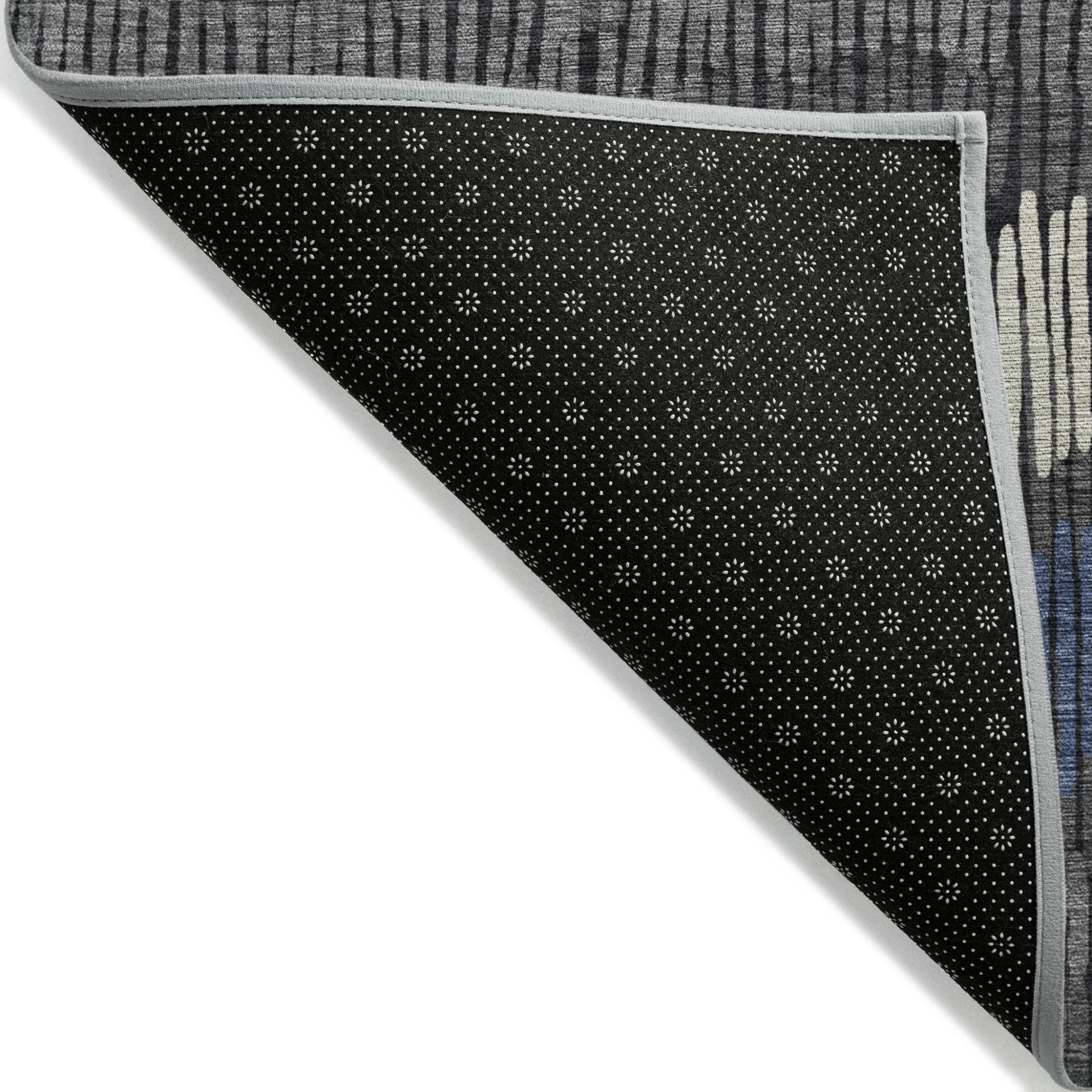 - A felt backing covers this rug to finish the look, keep the fibers in place, and help to keep the rug from slipping.
