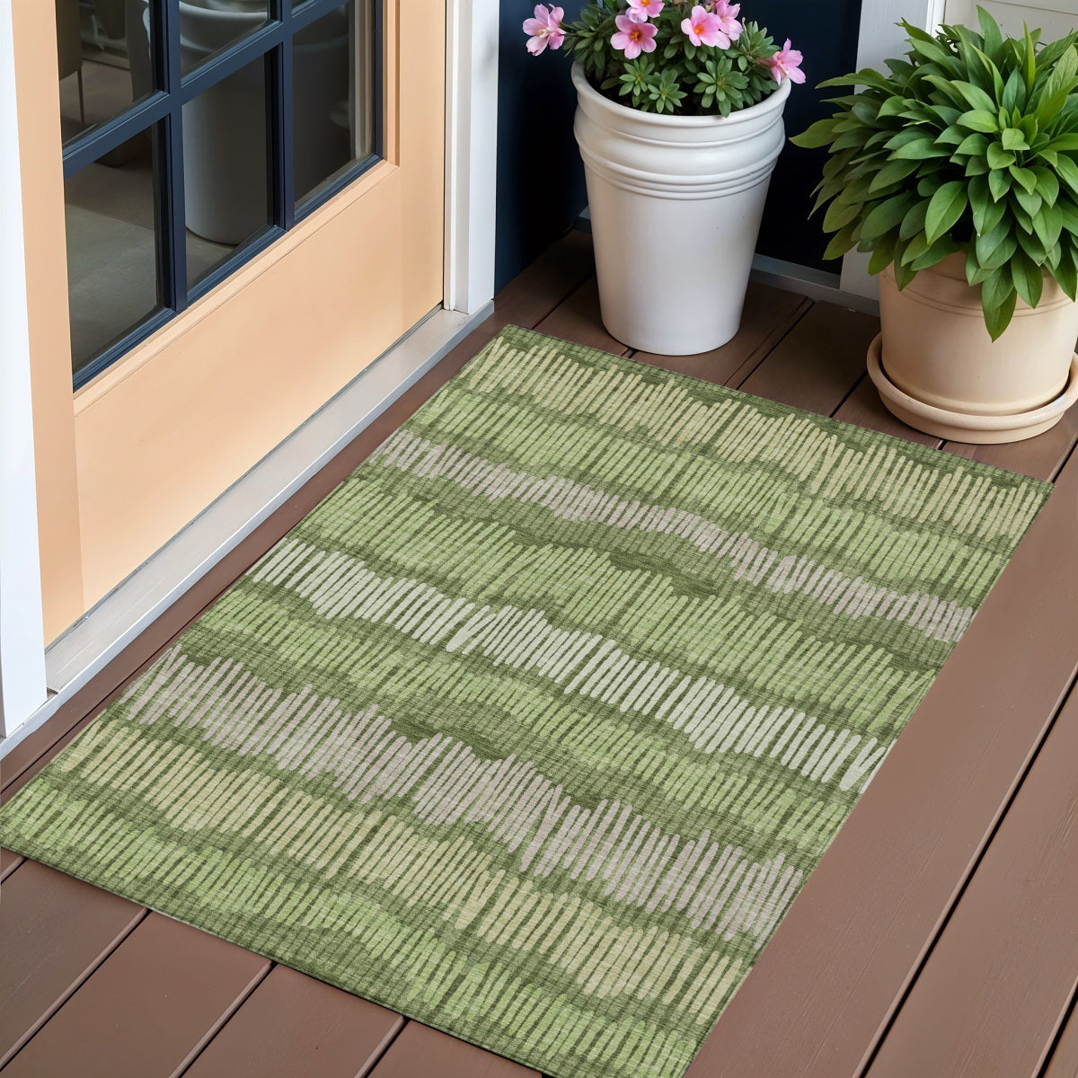 - Suitable for use both indoors and outdoors this rug is ideal for deck, porch, patio, pool, kitchen, entrance foyer, and more.