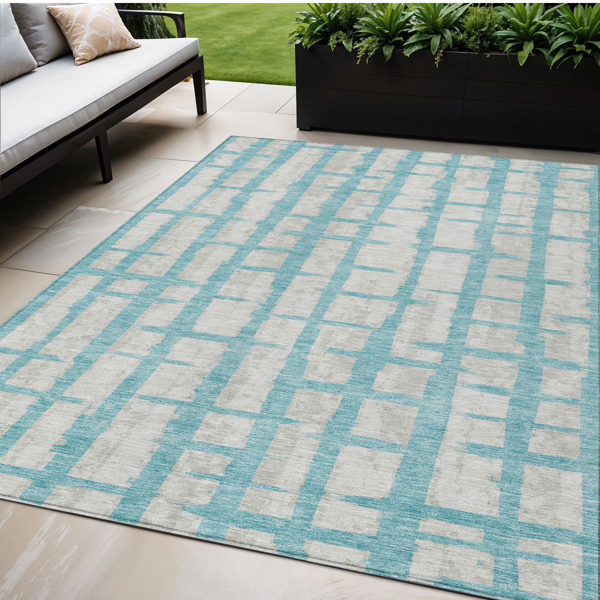 - Suitable for use both indoors and outdoors this rug is ideal for deck, porch, patio, pool, kitchen, entrance foyer, and more.