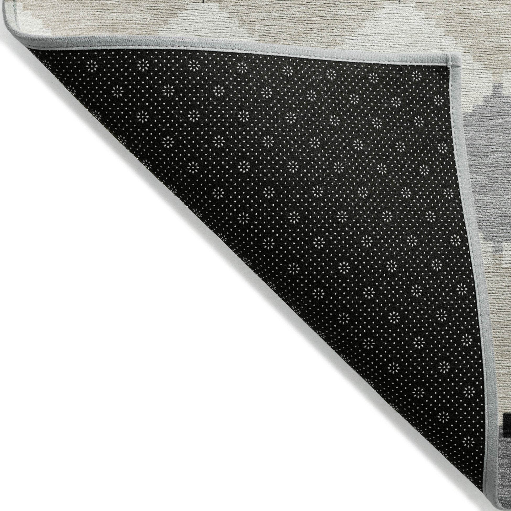 - A felt backing covers this rug to finish the look, keep the fibers in place, and help to keep the rug from slipping.
