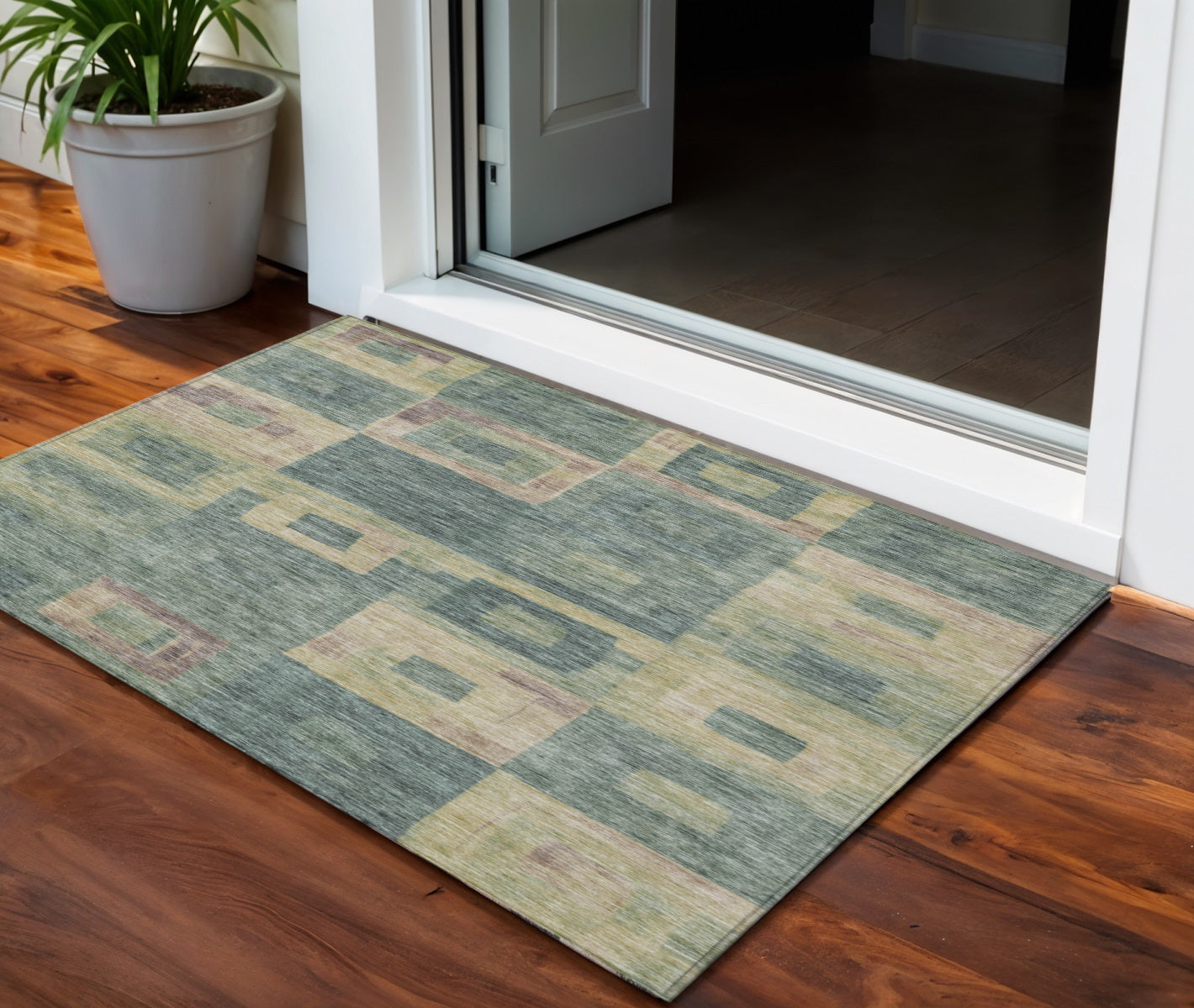 - Suitable for use both indoors and outdoors this rug is ideal for deck, porch, patio, pool, kitchen, entrance foyer, and more.