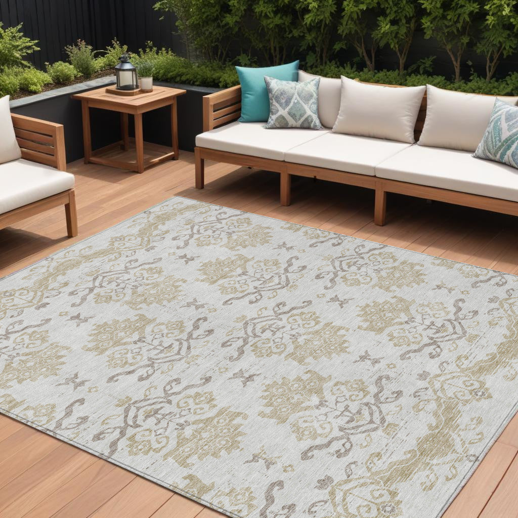 - Machine made outdoor rug with stain-resistant construction for easy maintenance.