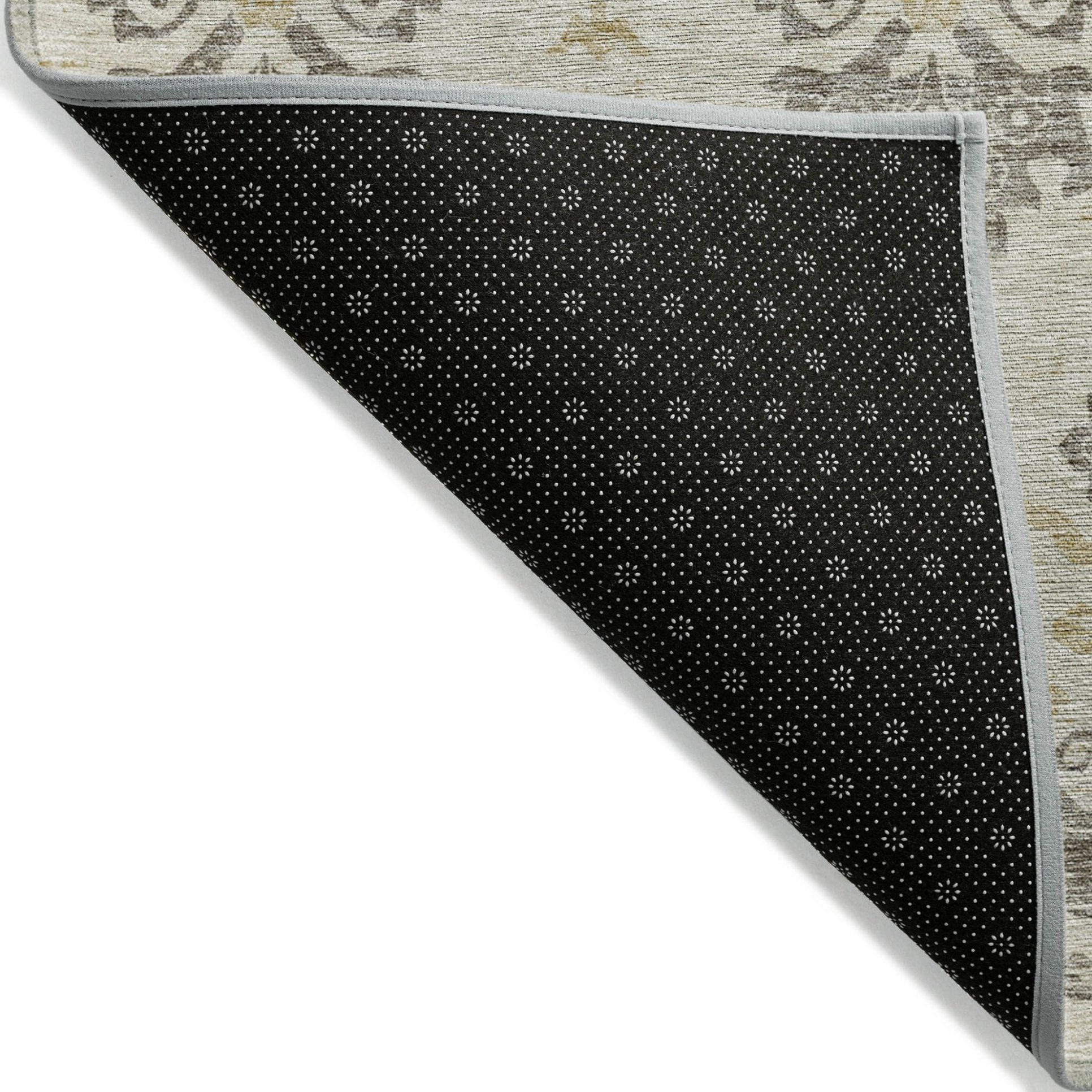 - A felt backing covers this rug to finish the look, keep the fibers in place, and help to keep the rug from slipping.
