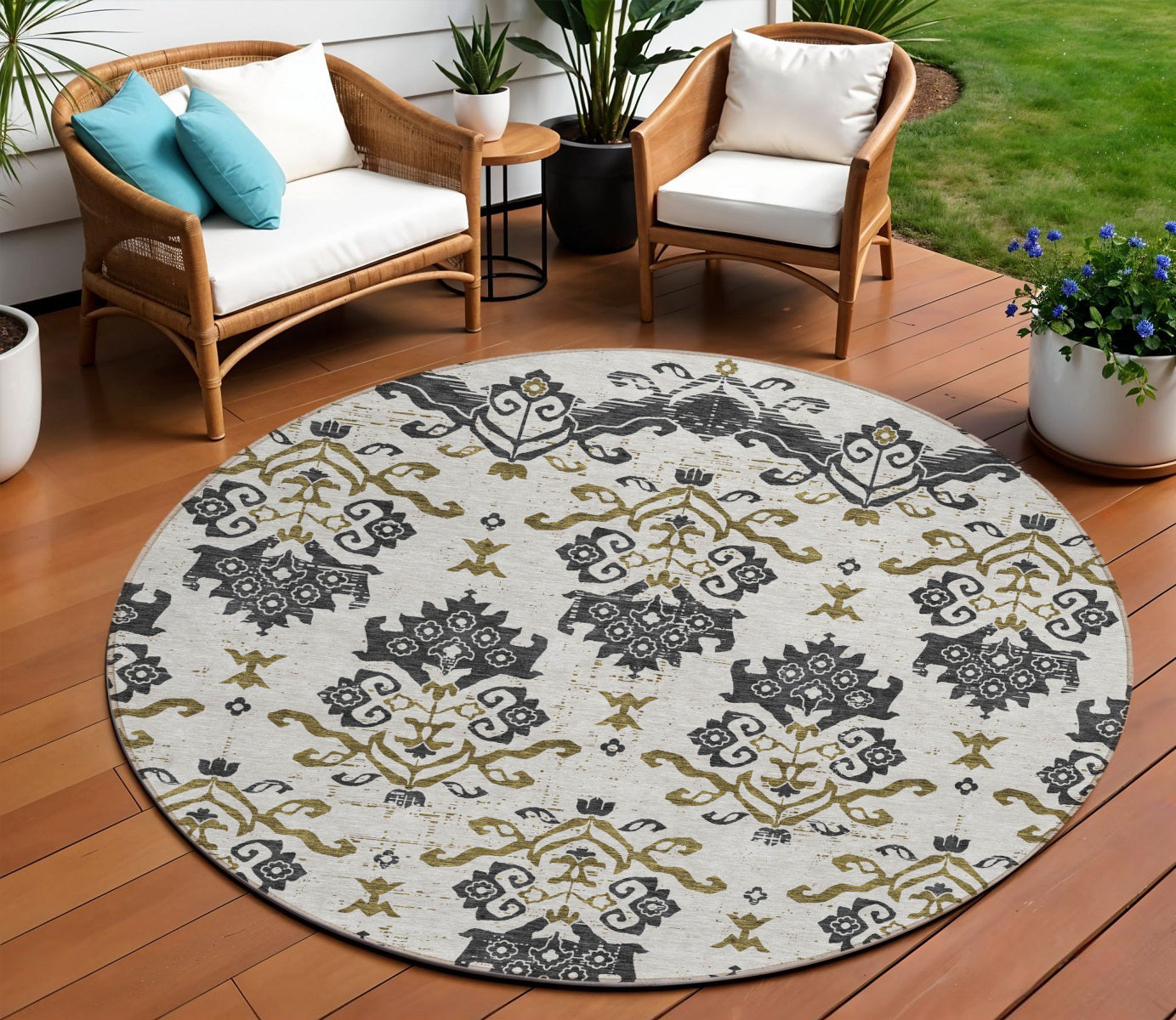 - Suitable for use both indoors and outdoors this rug is ideal for deck, porch, patio, pool, kitchen, entrance foyer, and more.