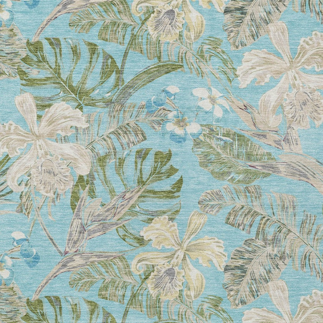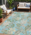 - Made from durable polyester, this rug features a beautiful blend of teal blue, olive green, and beige to enhance your outdoor decor.