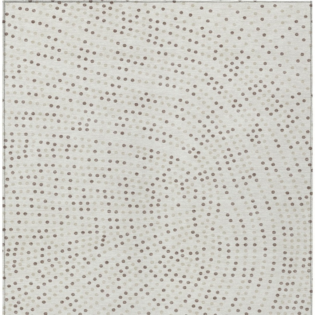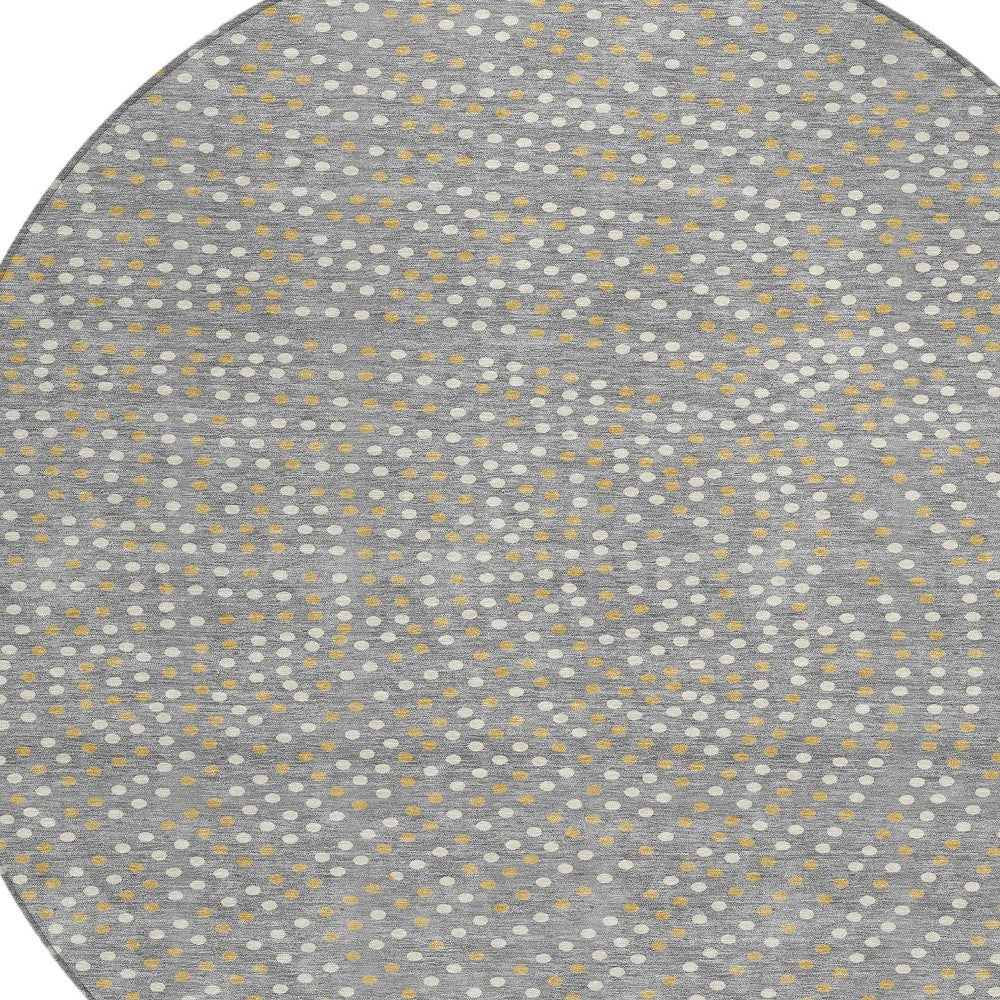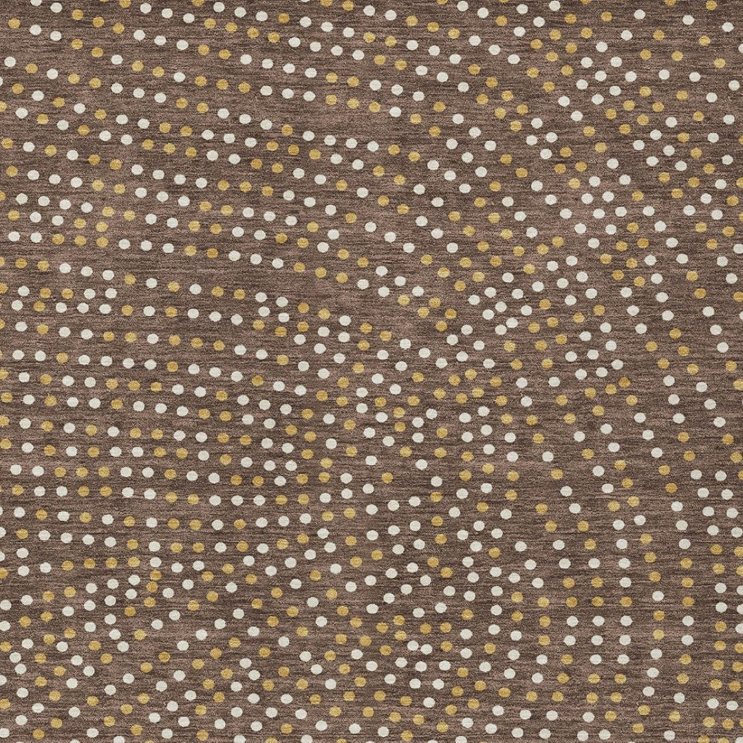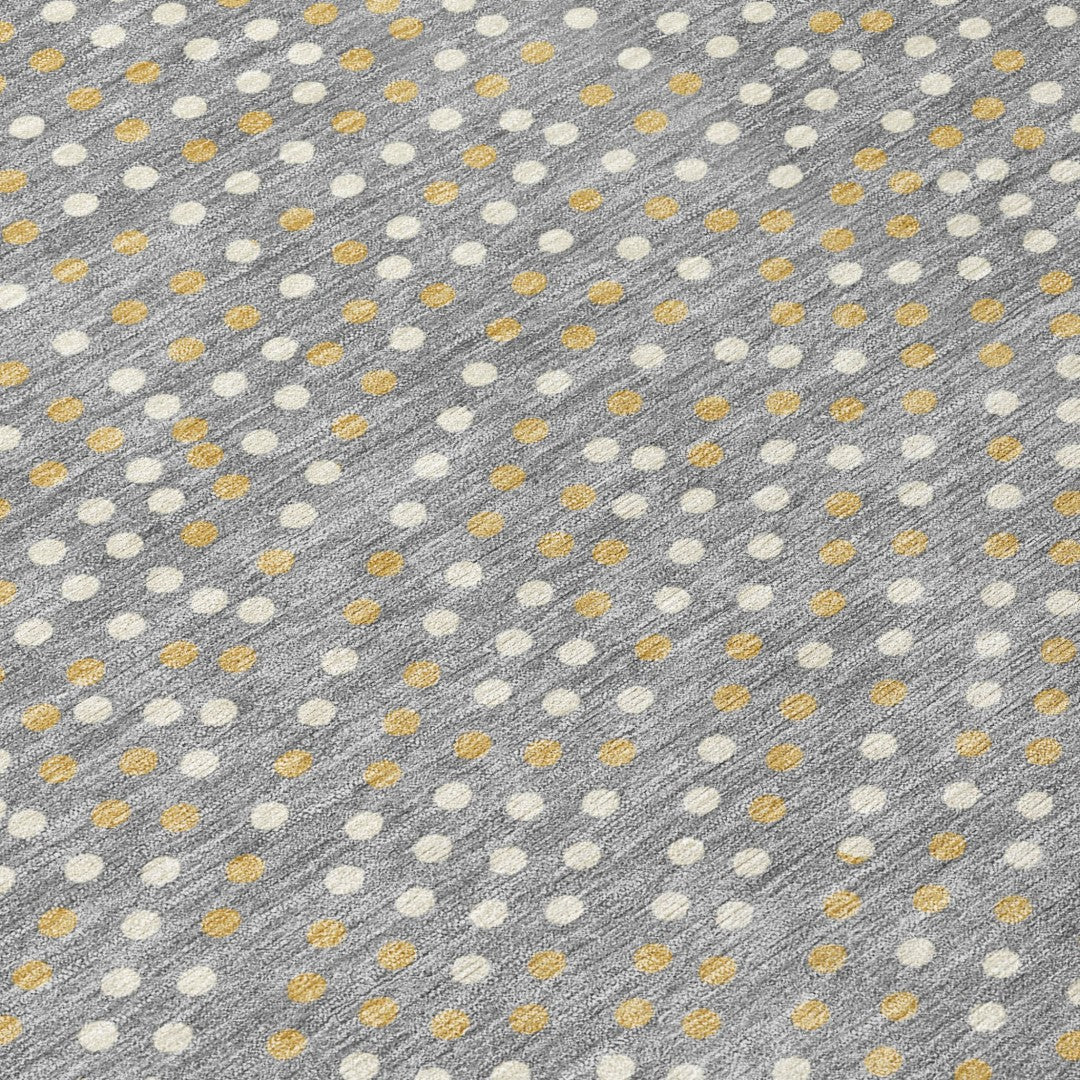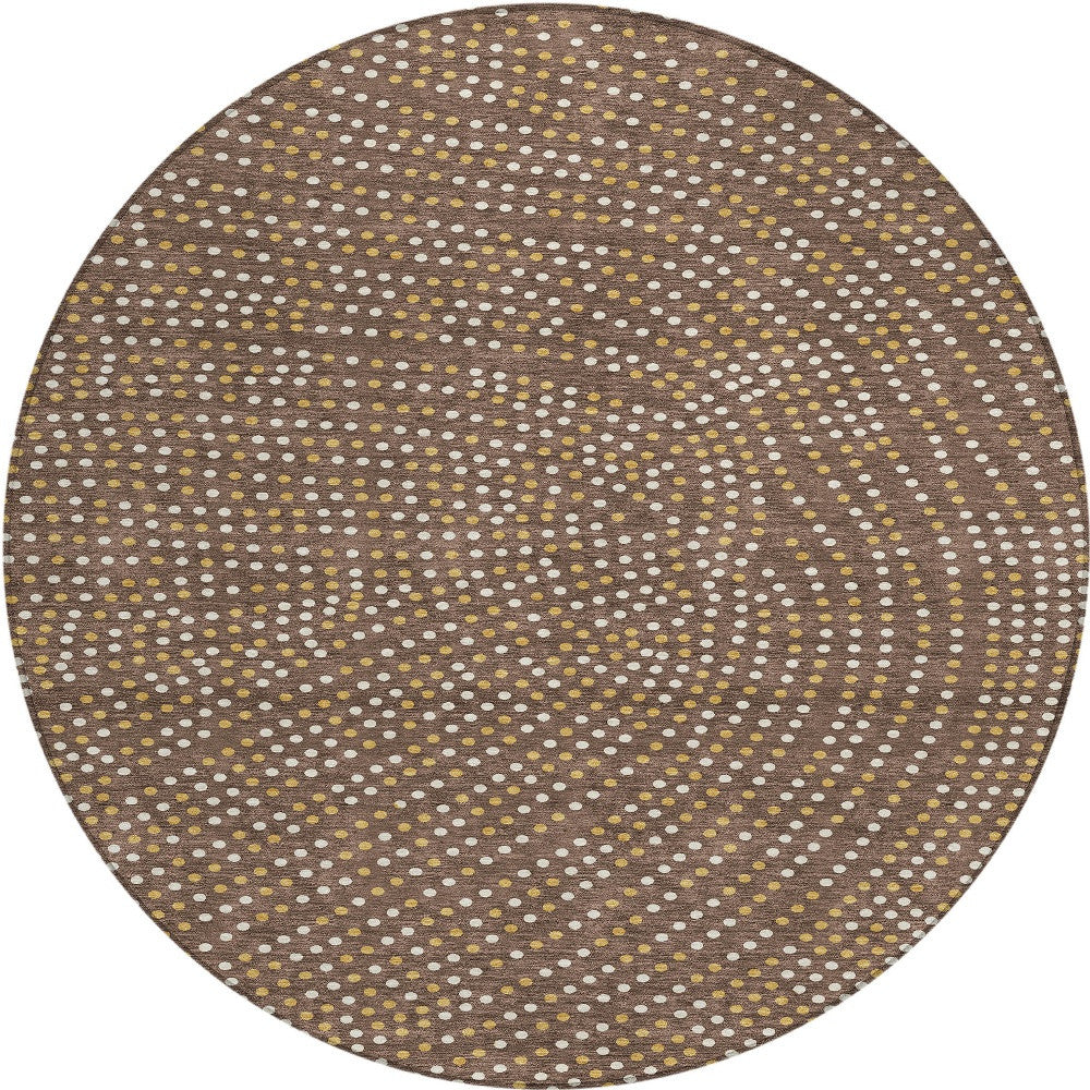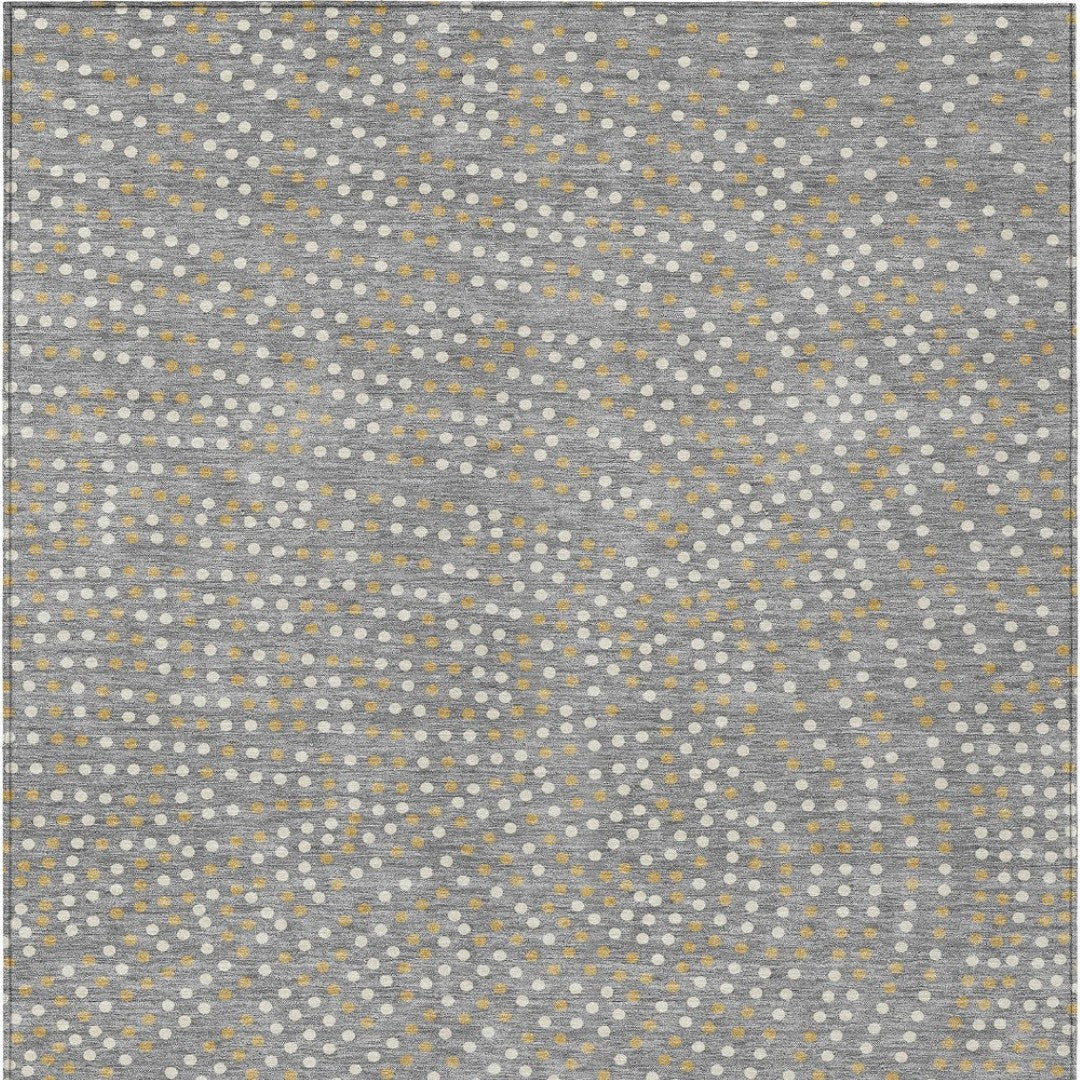 - Machine made outdoor rug with stain-resistant polyester material in a stylish gold color.