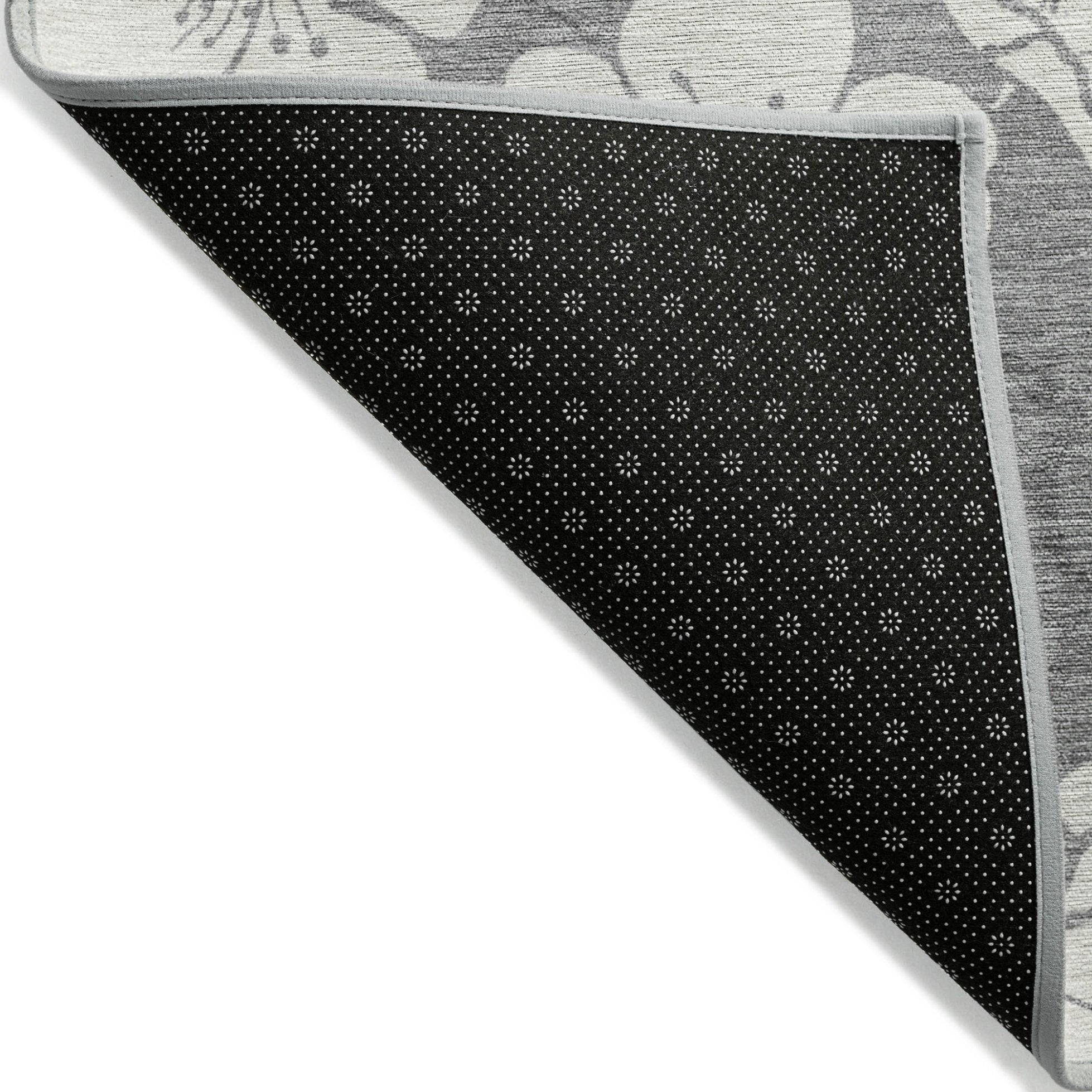 - A felt backing covers this rug to finish the look, keep the fibers in place, and help to keep the rug from slipping.