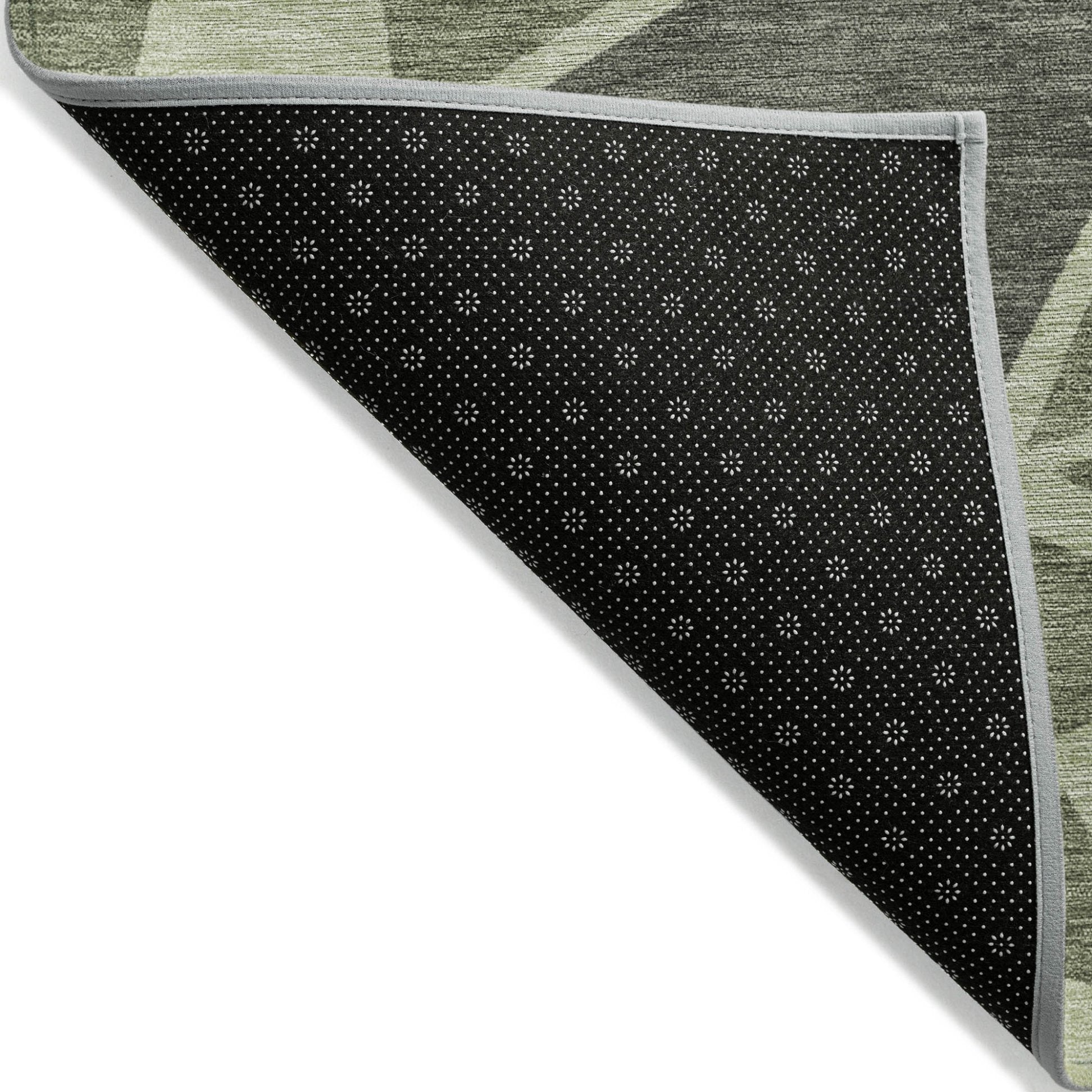 - A felt backing covers this rug to finish the look, keep the fibers in place, and help to keep the rug from slipping.