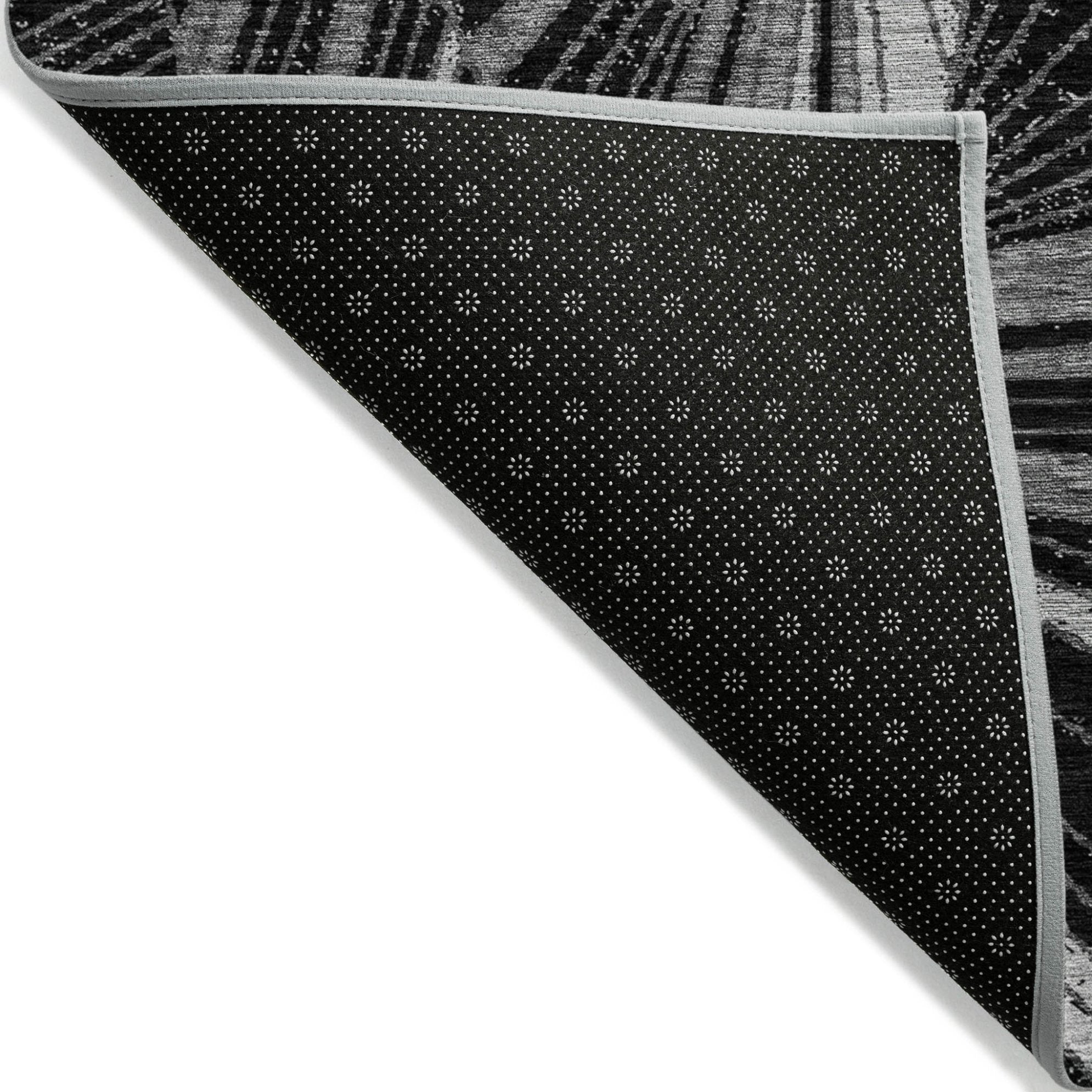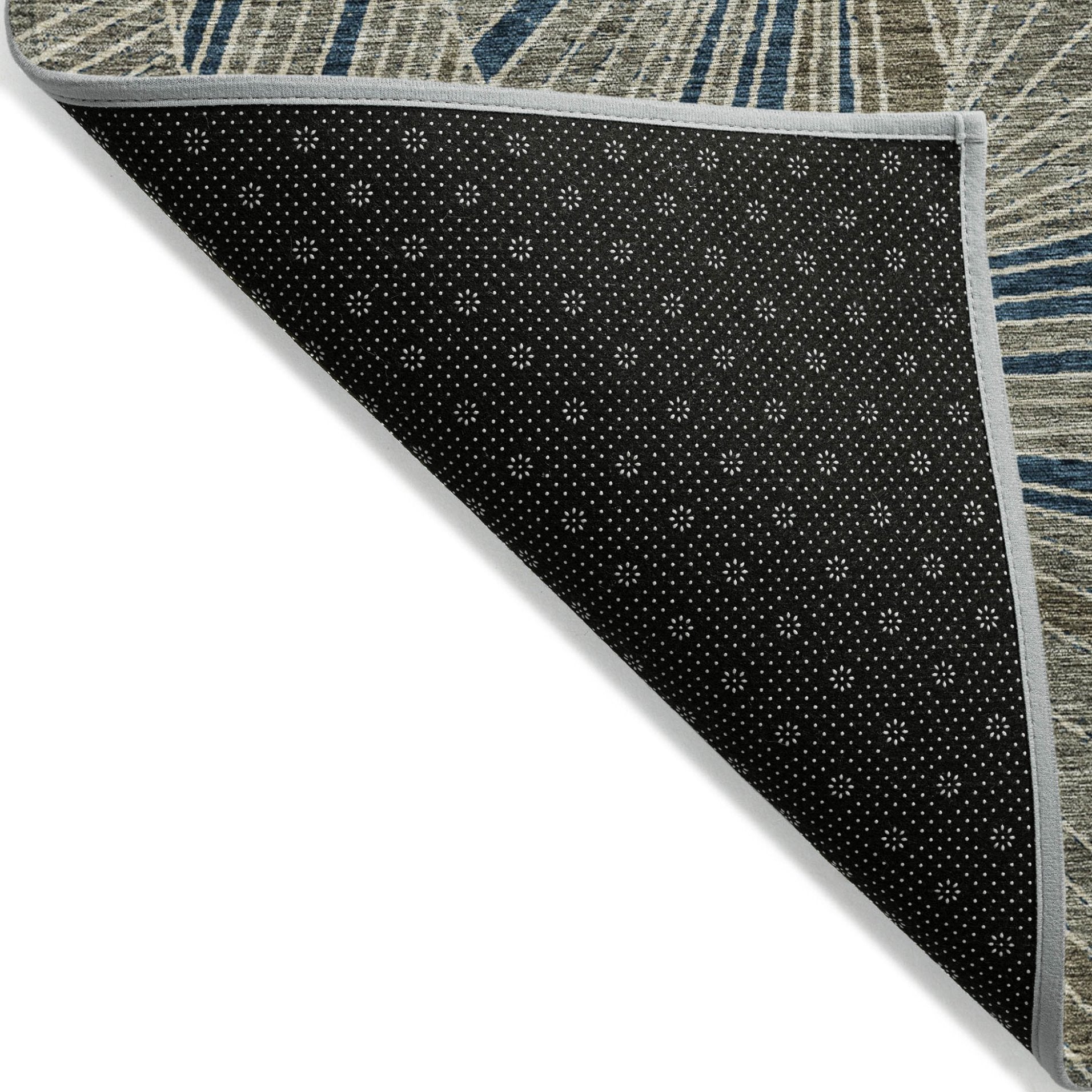 - A felt backing covers this rug to finish the look, keep the fibers in place, and help to keep the rug from slipping.