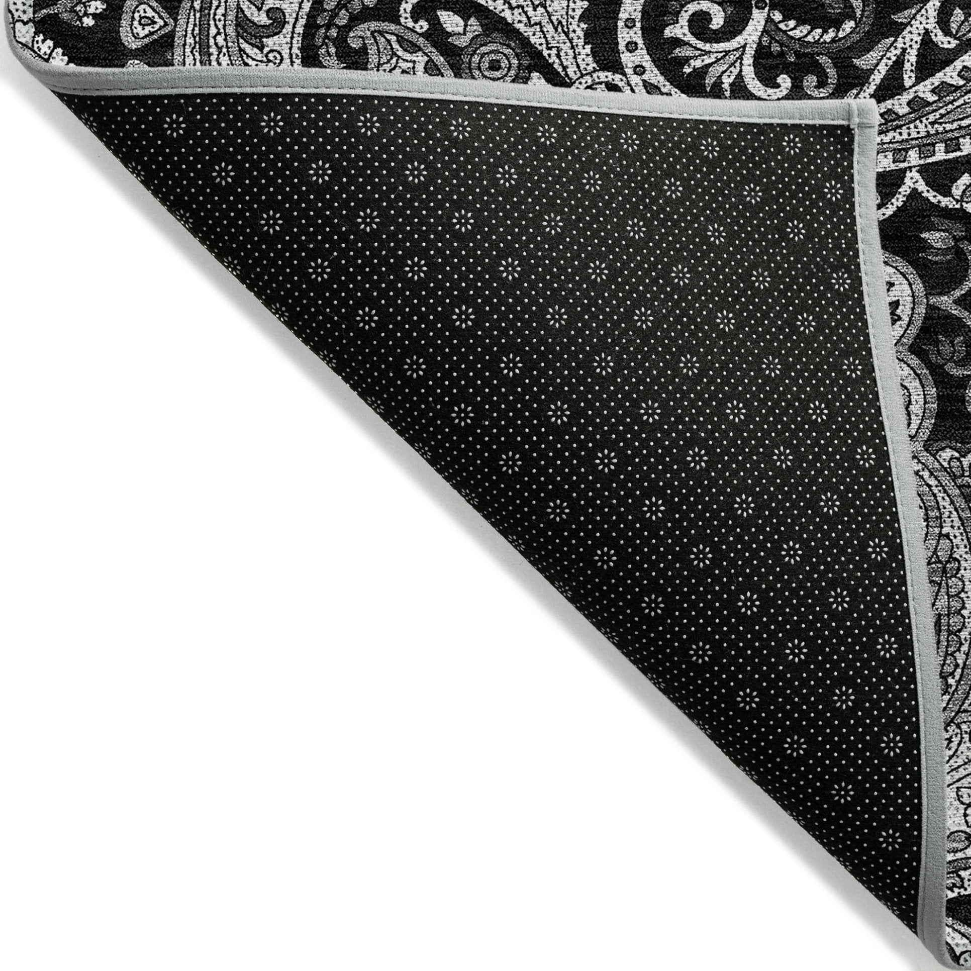 - A felt backing covers this rug to finish the look, keep the fibers in place, and help to keep the rug from slipping.