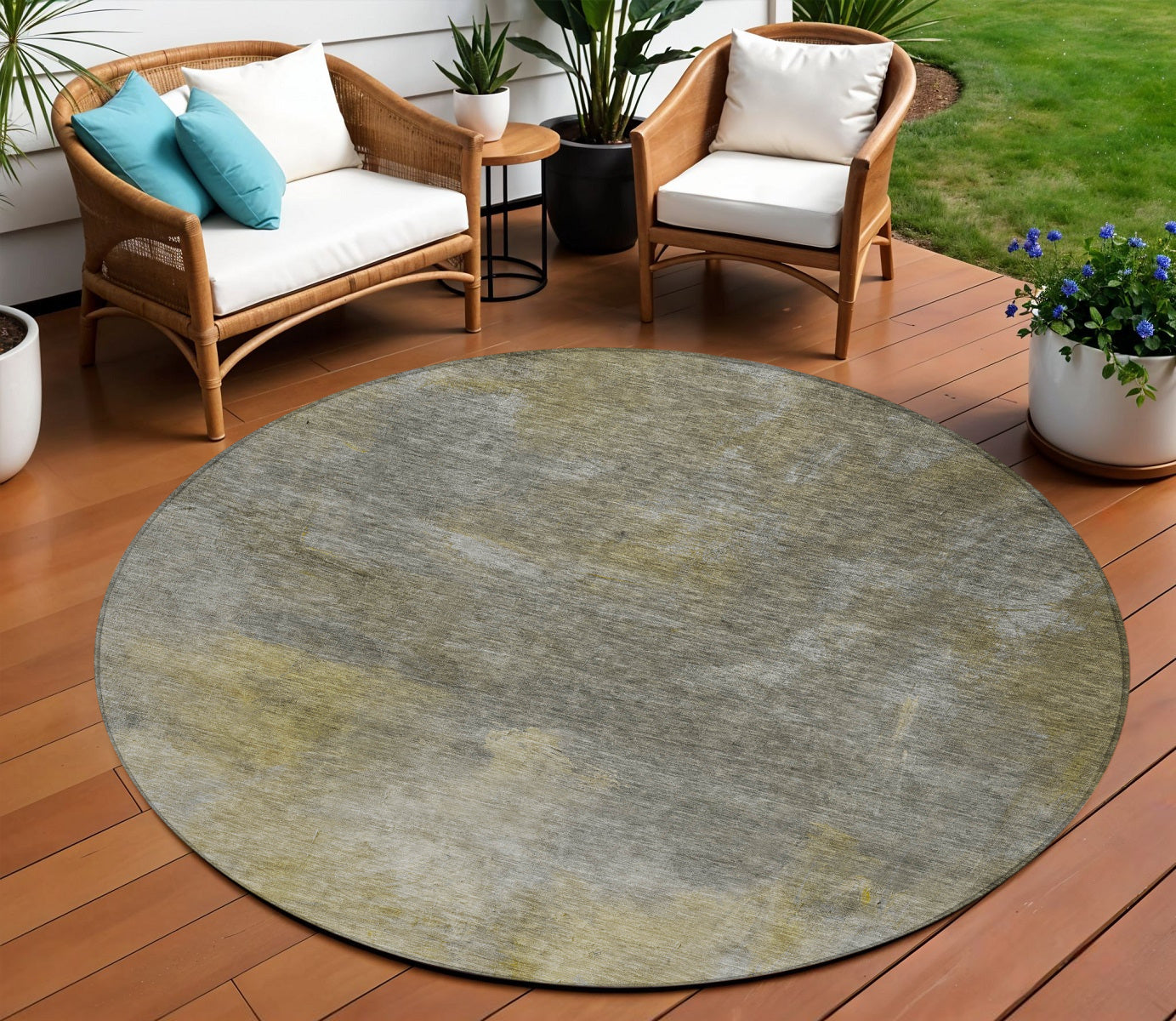 - Classically shaped, this versatile round rug is a great way to accent your indoor or outdoor space.